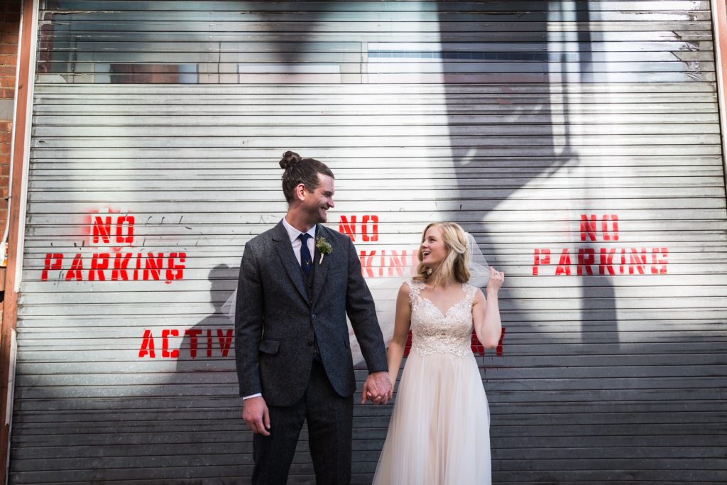 Next up on the Gallow Green wedding adventure was the bride and groom portraits. Chelsea has a wealth of unique photo opportunities, but Stephanie and Shane are simply not posed portrait kind of people. They wanted a more private portrait experience, so we staged their first look at Gallow Green on the railroad tracks. From here we walked one block to her mother’s apartment and took photos as we walked. If you are getting married in the area, you might also check out the Hudson River waterfront park area, walk along a few of the more industrial-looking neighborhood streets, or try your patience with the High Line. One heavy word of caution with the High Line: it is always heaving with tourists. The park itself is quite narrow, and there is virtually no way to avoid the crowds except starting your photo shoot at the break of dawn. The photo sessions I have done at the High Line (Anna & Andrew and Aimee & Colin) have all been done at around 8:00 a.m., so you have been warned.