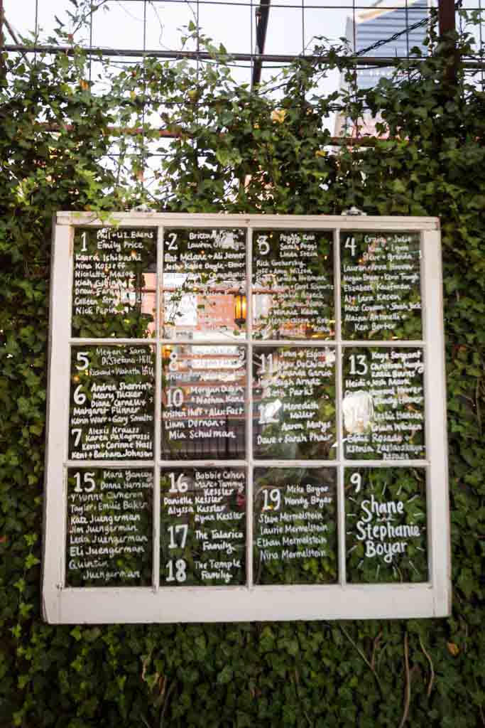 I mentioned the forest theme, which could be found throughout the wedding from the invitations to the cake topper. The theme matched perfectly with the natural decorations studded around the Gallow Green treetop-lined roof deck. Speaking of which, the roof offered guests a spectacular view of the Chelsea area, and in particular, you could see the Empire State Building shining red and white.