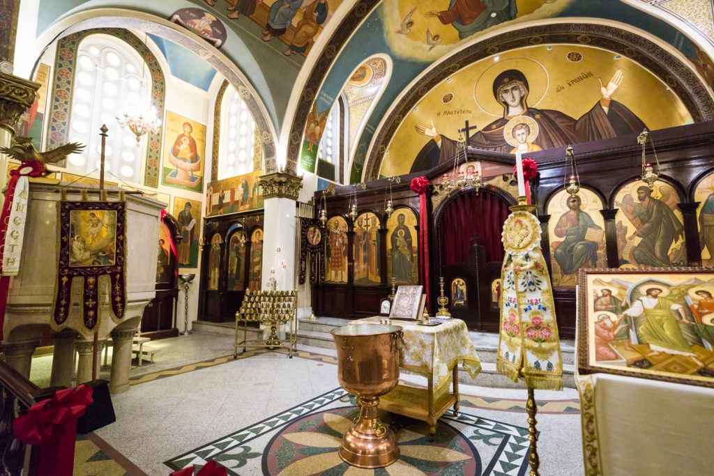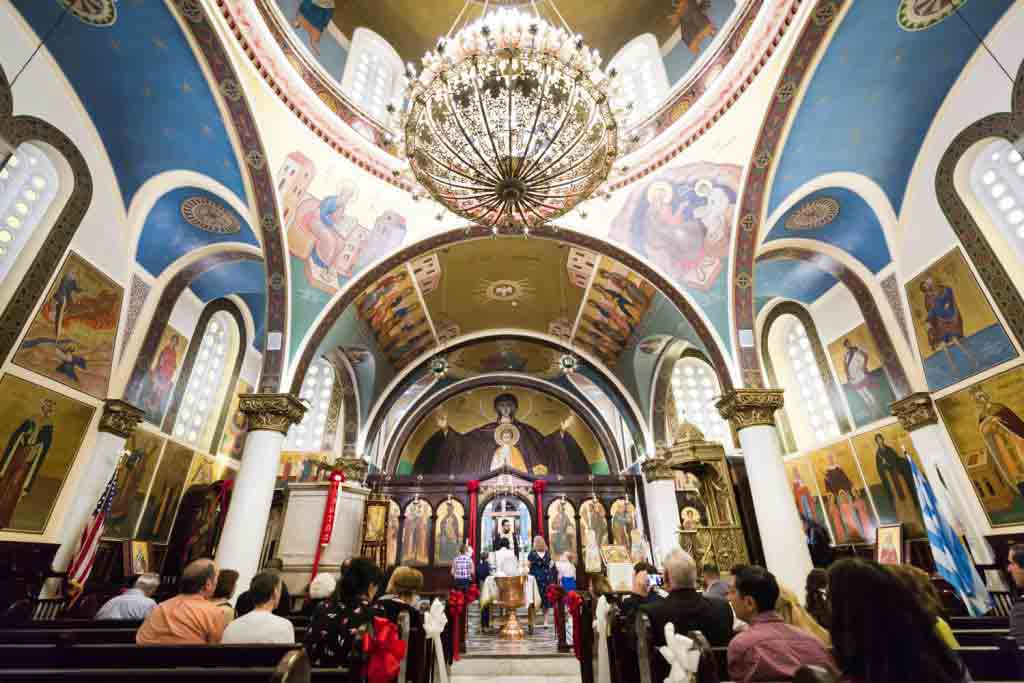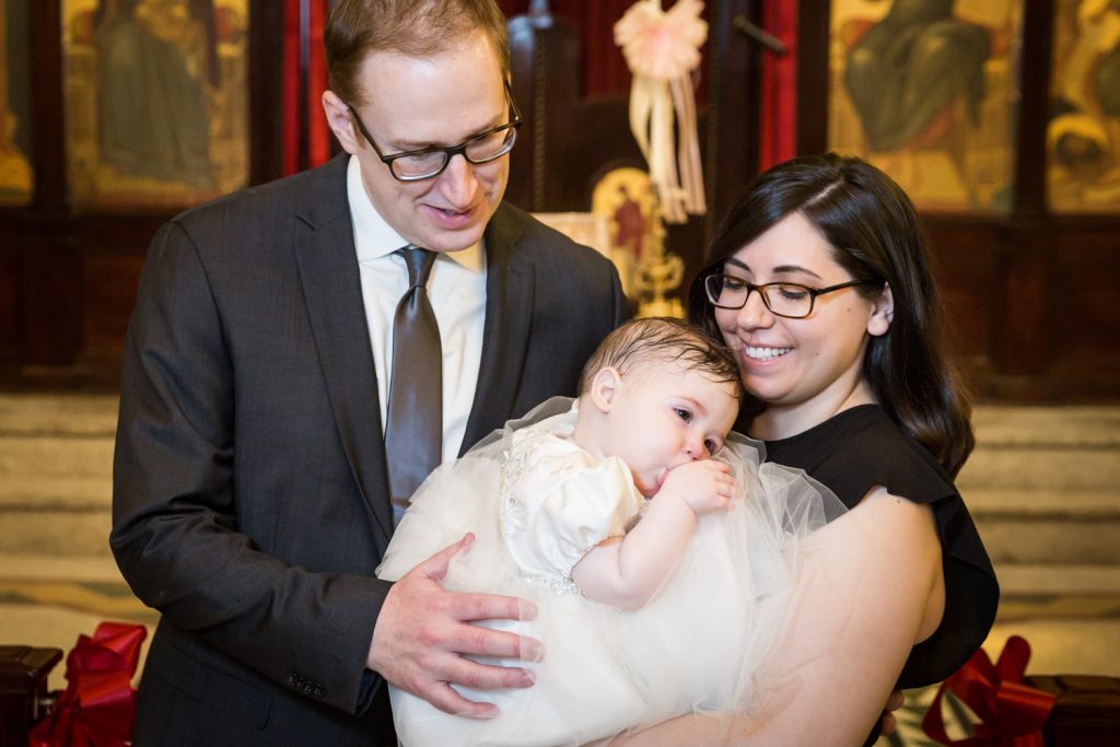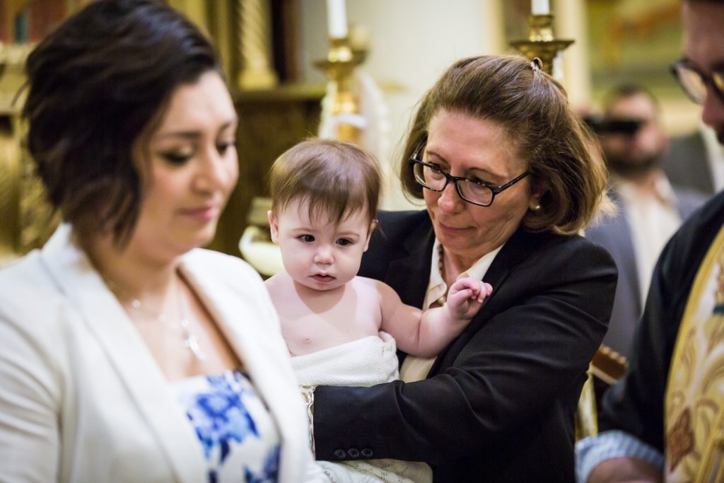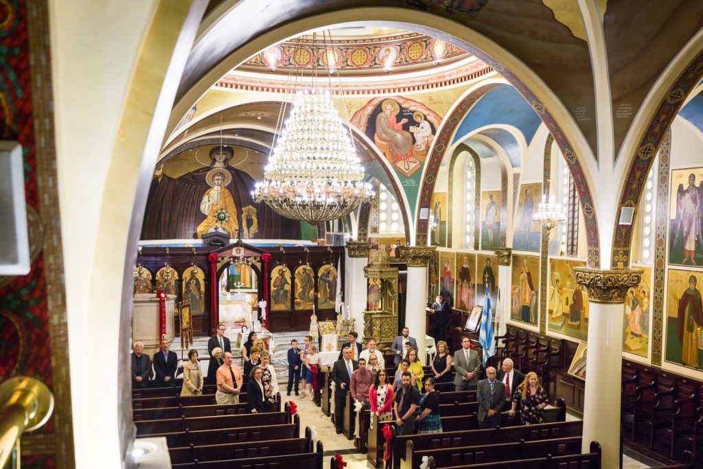 Let me begin by introducing you to precious Penelope. Her mother, Mary, requested my photography services and I was more than happy to oblige. The service took place at Saints Constantine and Helen Greek Orthodox Cathedral of Brooklyn. This was my first time visiting the cathedral. From the outside, you would never guess the beauty of the cathedral’s interior. Indeed, stepping inside took my breath away. There is a choir loft that gives a fantastic wide-angle view over the entire church, and the stained glass windows let in enough light to dazzle any visitor.