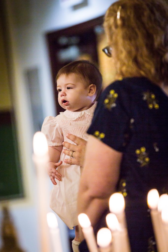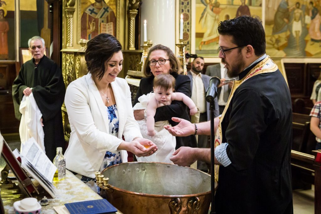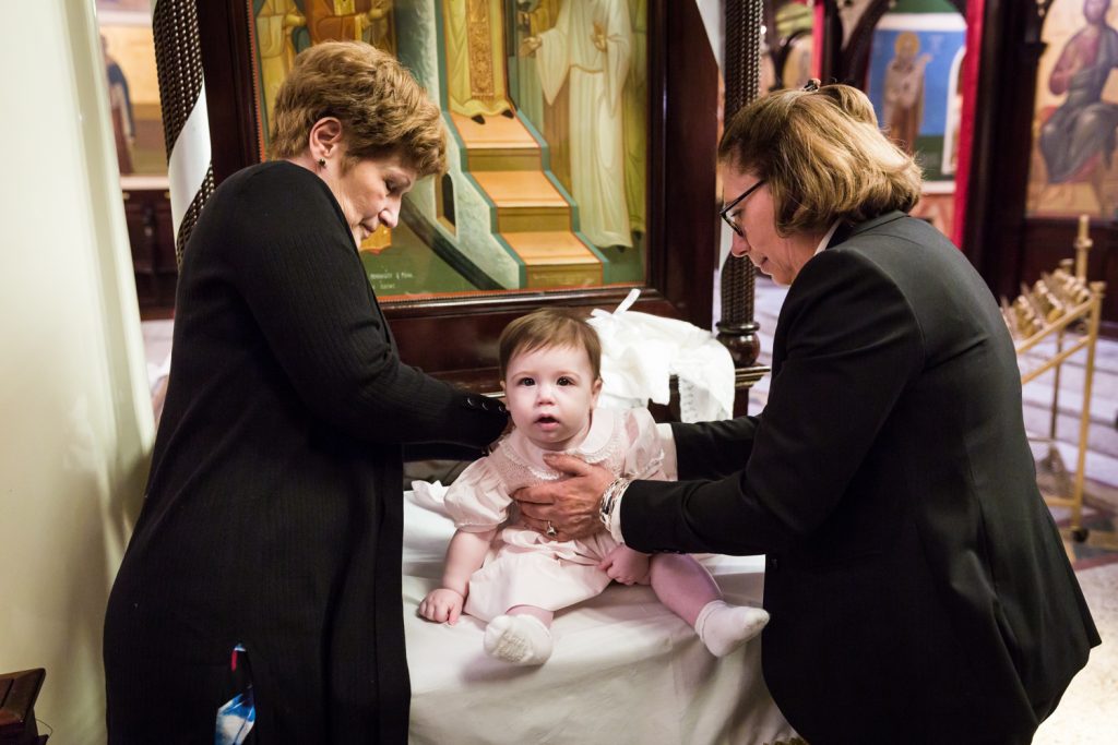 Greek orthodox baptisms are some of my favorite family events to photograph. In addition to taking place in stupendously beautiful churches, there is always an air of mystery to the service. Follow that with a helping of delicious food at the reception, and you can easily see why I say ‘yes’ to all Greek baptism photo requests. With everything that is going on in the news today, I think we all need a minute to escape back to life as it was. So let’s sit back and enjoy little Penelope’s Greek Orthodox baptism photos in today’s blog post.