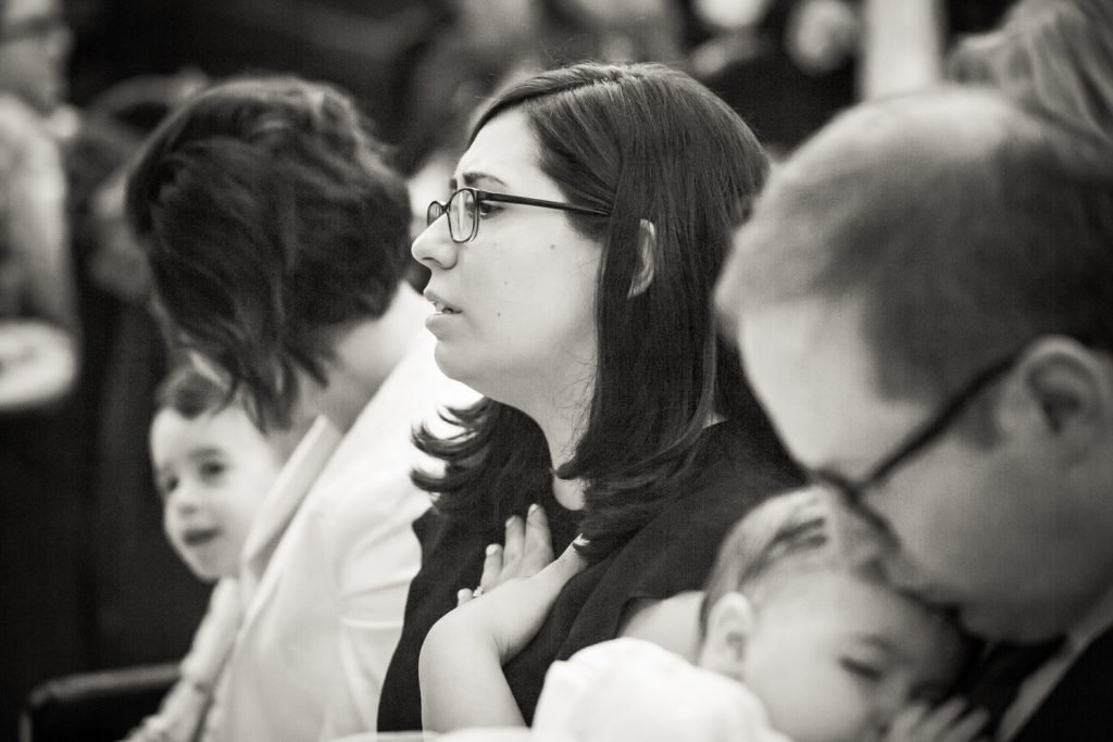 My personal motto is to never distract either the priest or the guests attending a family event. As such, I try to limit my flash use during the ceremony. For Penelope’s baptism, even though it was quite dark in the church, I did not need to use my flash. My camera settings were f/3.2, 1/125, ISO 1600. In truth, if I really needed to use flash it would be quite difficult since the ceilings in the cathedral are so high.