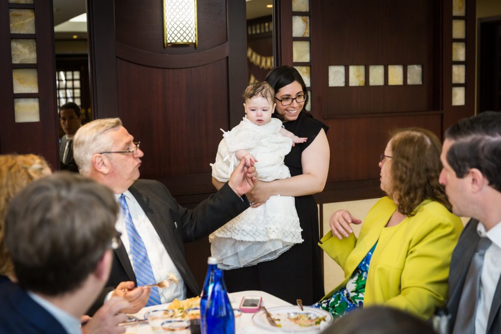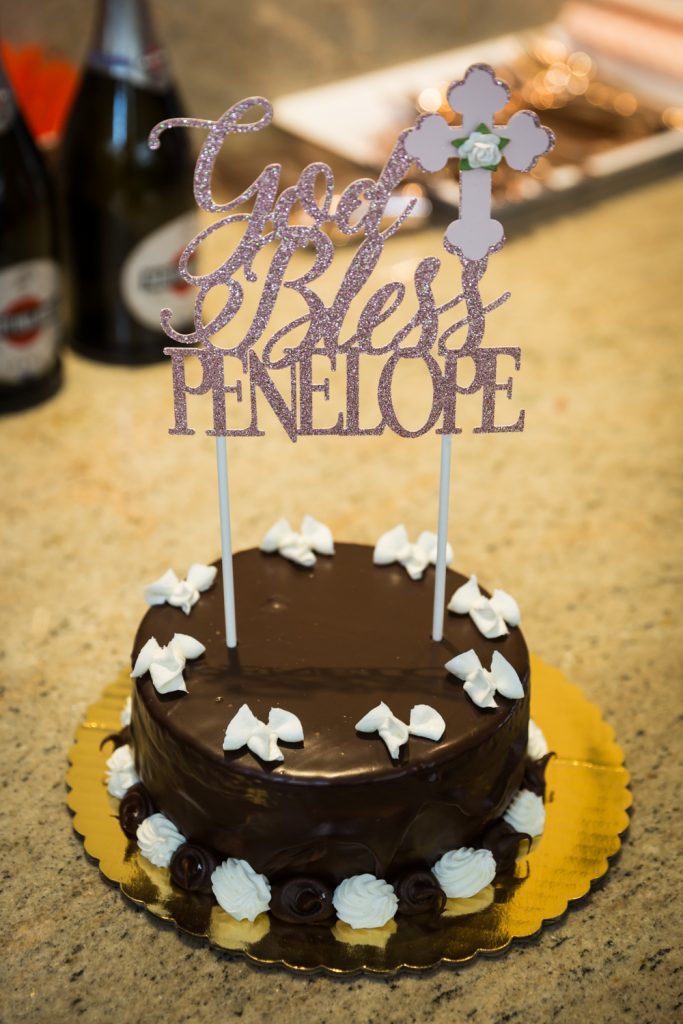 The service for Penelope’s baptism followed the usual orthodox course of events. For those of you who have never been to a Greek orthodox baptism, I have a link below to a schedule of events as provided by St. John the Baptist Greek Orthodox Church in Tampa. This is an excellent guide to know what is going on during the hour-long service. Greek orthodox baptisms always begin at the back of the church and the priest, baby, and godparents work their way towards the altar. Highlights of the baptism include a precious naked baby, the official dunking, anointing the baby with oil, and even a haircut. You will always be entertained at a Greek baptism.