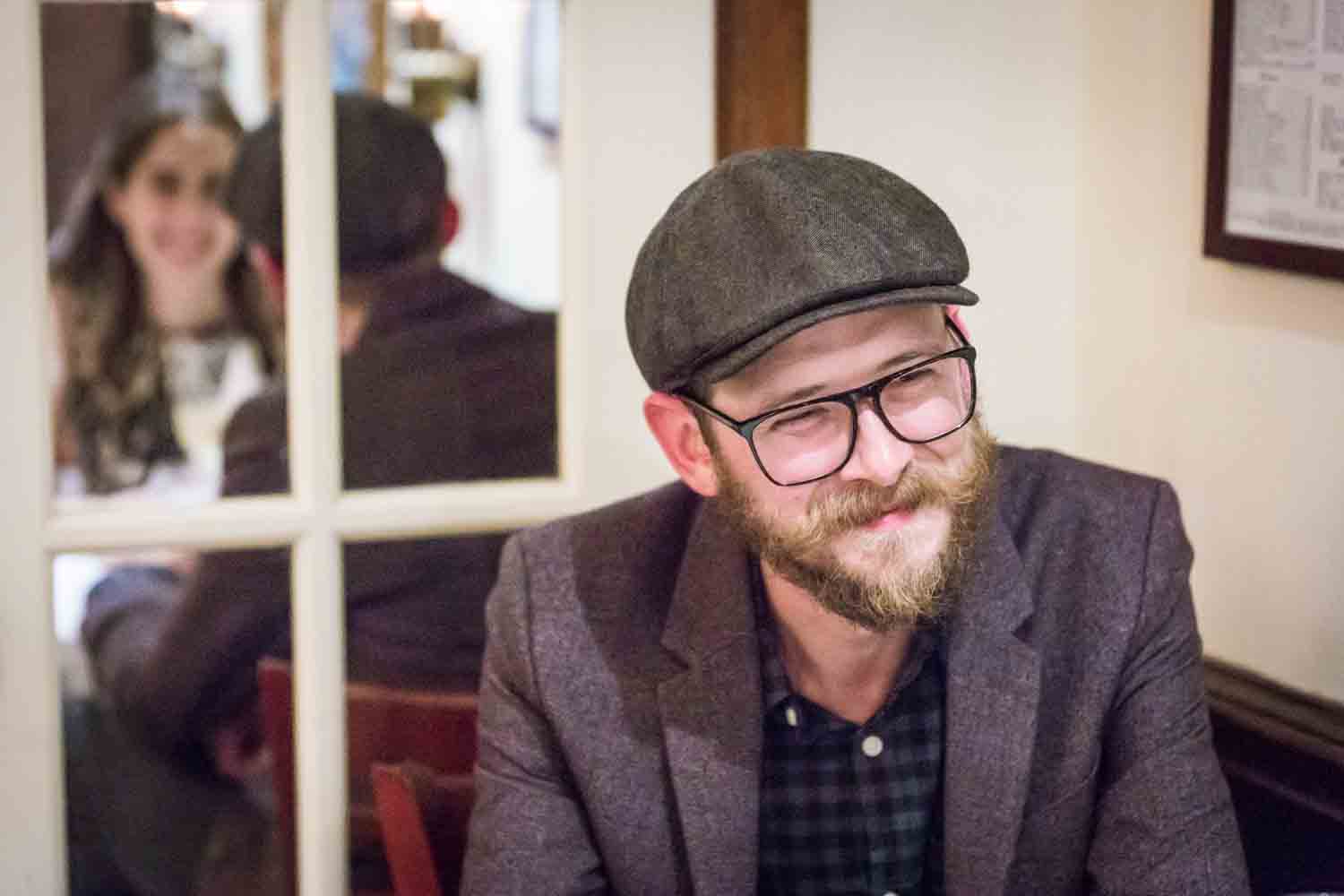 Be flexible. You can never completely recreate something from start to finish. In the case of Miriam and Chaim’s date, they actually started the evening at Washington Square Park, and then moved to the Up and Up bar. For our shoot we had to switch things up a bit. The photo shoot had to start earlier at the Up and Up because the bar officially opened at 5:00 p.m. As such, we had to get all of our images taken before the door got crowded. Secondly, Miriam and Chaim actually ended the evening at Max Brenner’s chocolate bar in Union Square. I keep my photo shoot to two hours because, frankly, unless you’re a professional model you will be sick of taking photos after two hours. We didn’t have time to take in the sunset on the Hudson River and make it to Max Brenner’s within the two-hour time frame, so the Max Brenner location was cut.