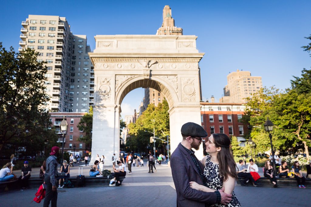 If you want a quieter environment for your photo shoot, don’t forget about Washington Mews, the small street where the language department for NYU is located. As you can see from Marisa and Colin‘s Greenwich Village engagement portrait, Washington Mews is a quaint little cobblestone street that looks out of place in downtown Manhattan. Definitely take photos here, but know that the Instagram crowd also knows about Washington Mews, and you’ll need to be strategic to keep them out of your frame.