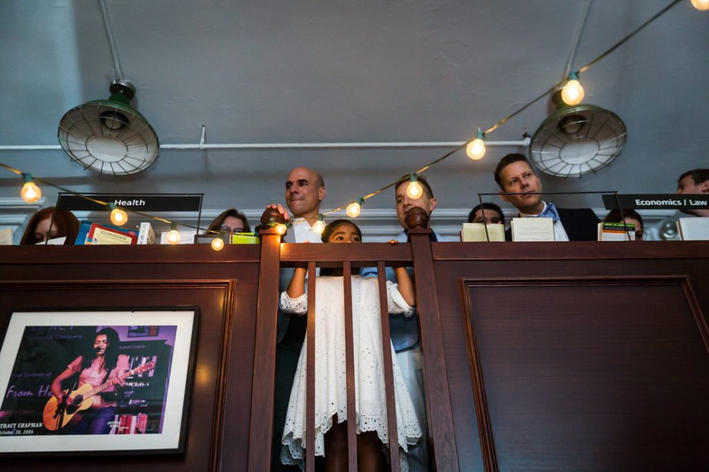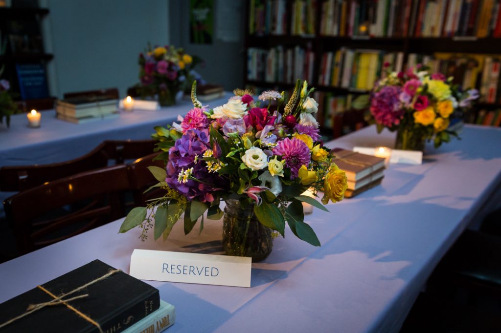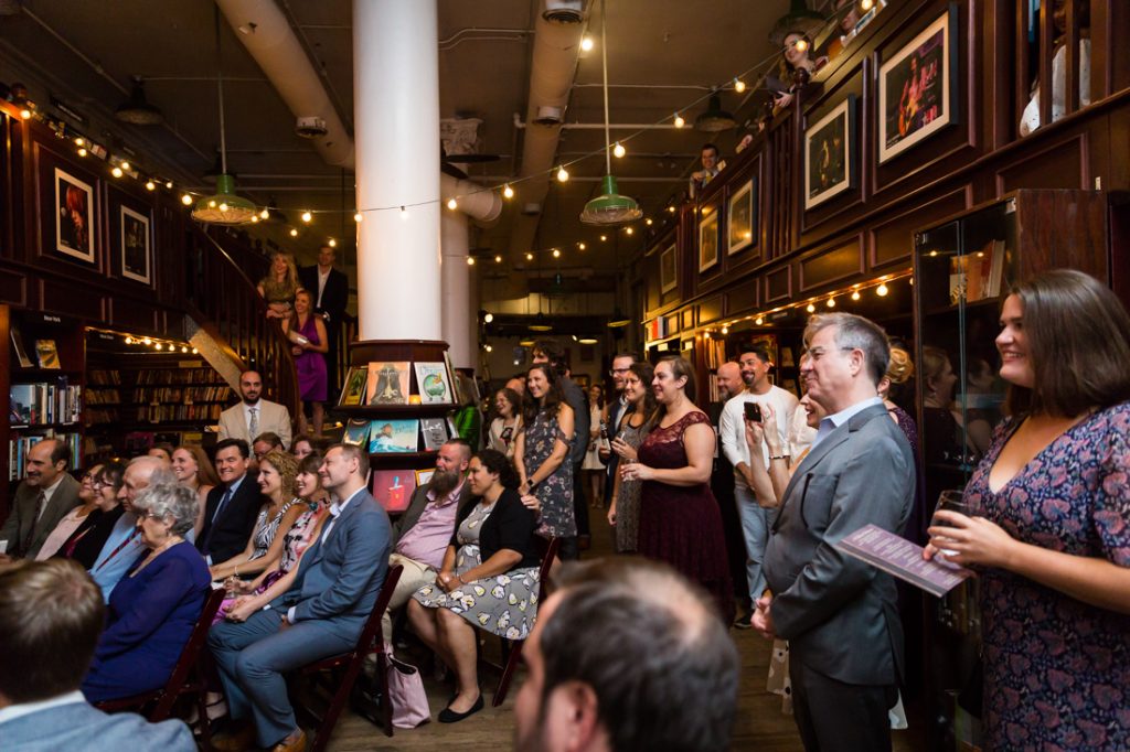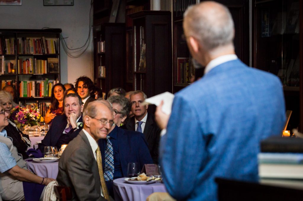 The ceremony was located in the normal spot for the Housing Works Bookstore Café: underneath the art and design book section. I should mention, however, that the lighting was quite dark, and I felt compelled to use flash during the ceremony, which I don’t normally do. I tried to be as unobtrusive as possible, but if you are hosting your wedding at the Housing Works Bookstore Café, think about turning the lights up just for the ceremony.