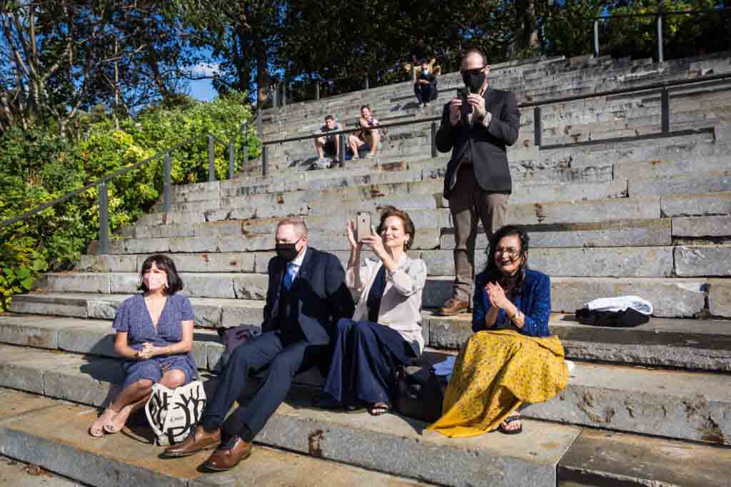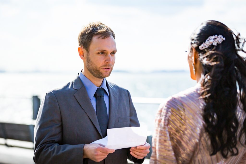 Indeed, it was a nerve-wracking week leading up to Lena and Dan’s wedding as we all watched the forecast. Thankfully, the day turned out to be beautiful with not a raindrop in sight. Their ceremony was easy, breezy (thanks to waterfront wind) and one of my all-time favorite ceremonies to photograph. Their weekday service meant very few crowds, so we had the run of the park for photo locations following the ceremony. Oh, and by the way, the couple did end up having a small private reception at Bottino Restaurant following the wedding. There were no photos at the family dinner, but there will be much rejoicing (and photos from me) at the larger celebration to follow whenever we get out of this pandemic.