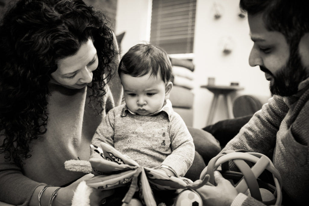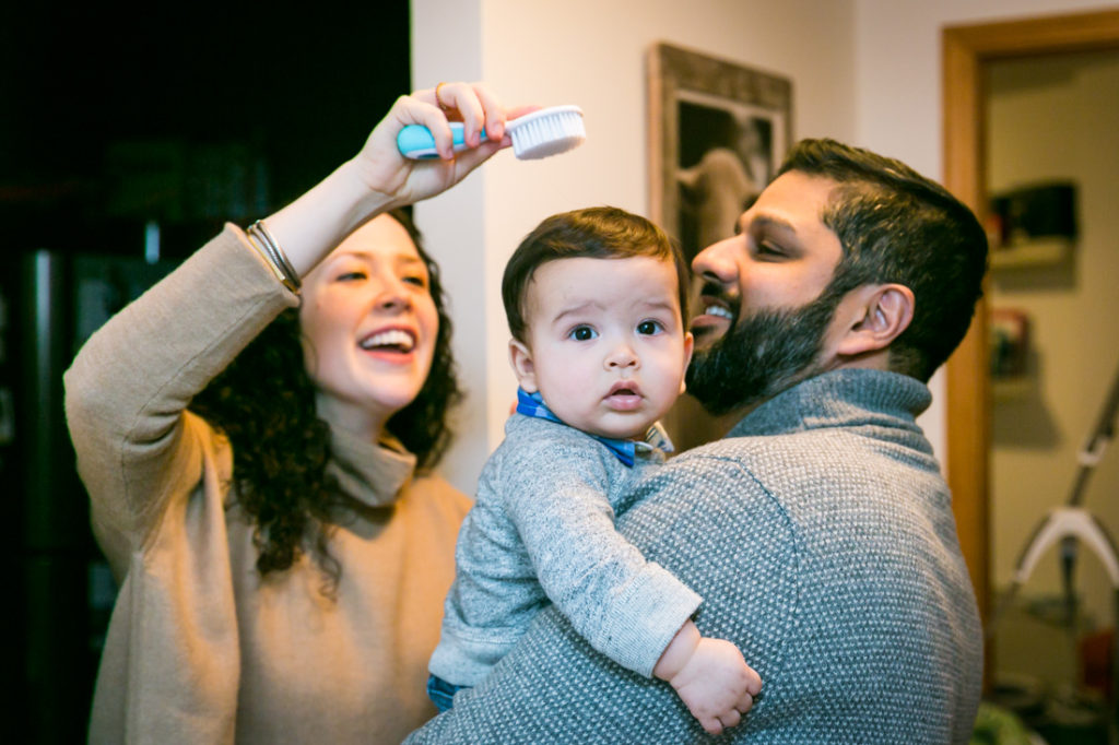 Activities are important. While playing in the snow may be out of the question, activities are still important to give a sense of movement and life to your photo session. Put the baby on the floor and play together as a family. Engage with a favorite toy. Bath time, brushing teeth, eating a snack – these are all great activities to document.