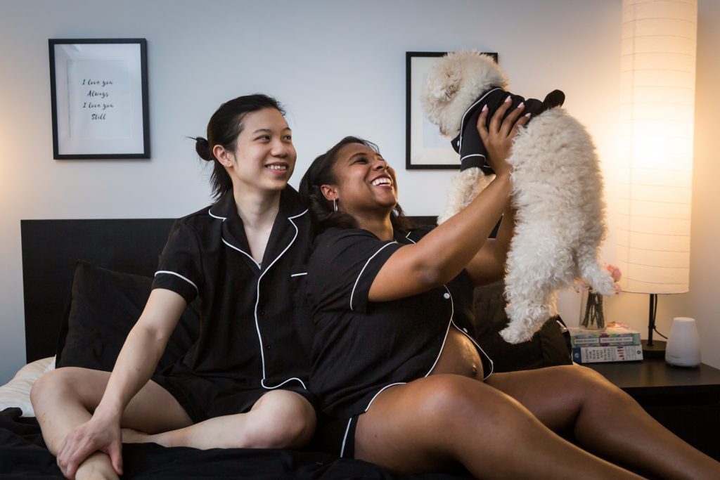 Restrict your fur-baby to interior shots and keep it humans-only for any outdoor photos. Elizabeth and Jeffrey’s bedroom provided some great shots in an intimate setting. Most importantly, it was the perfect location to photograph their little dog, Sanford. If you are planning on having your fur-baby be part of your indoor maternity shoot, then I recommend following in Elizabeth and Jeffrey’s footsteps and leaving the outdoor photos for the humans. This way you don’t need to have a wrangler to handle the dog and you can concentrate on getting your best shots.