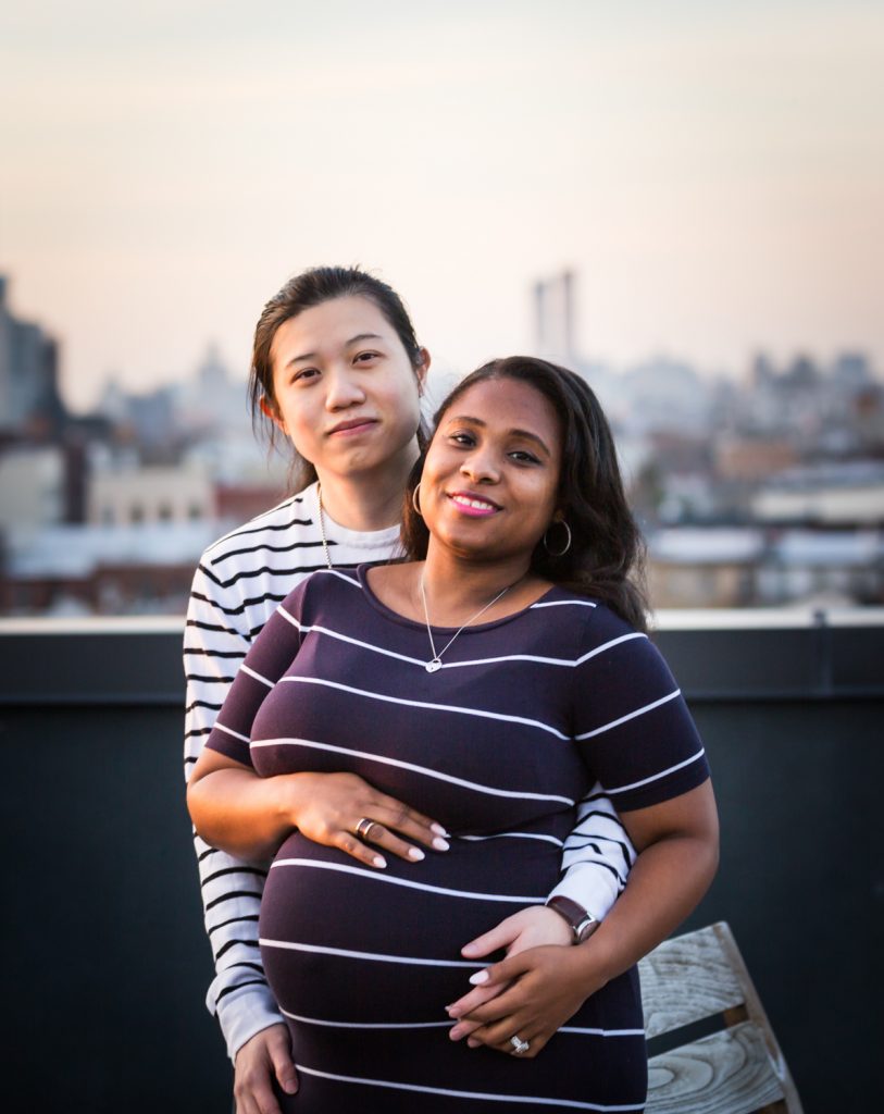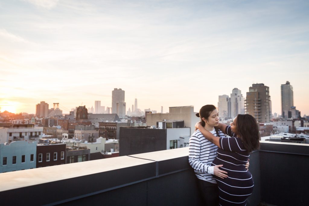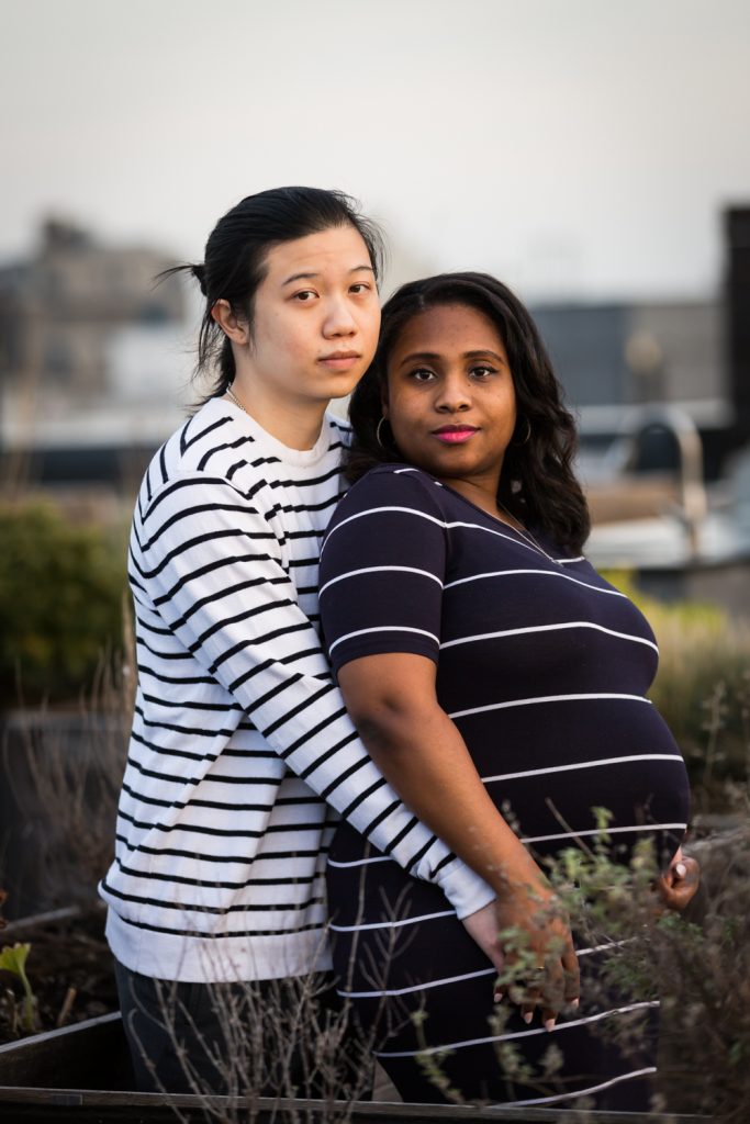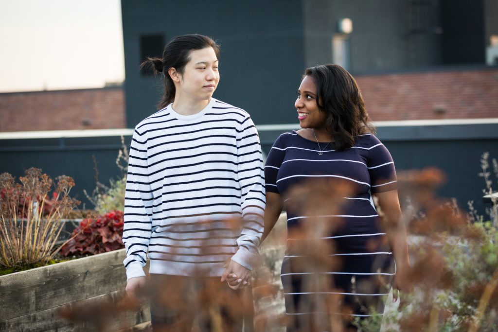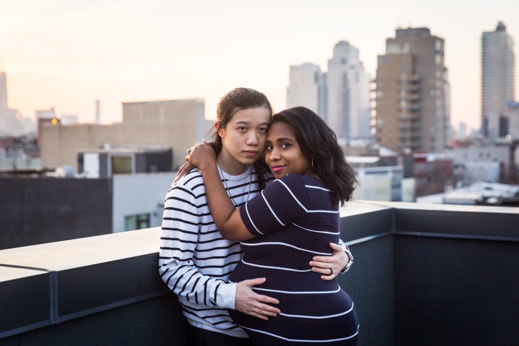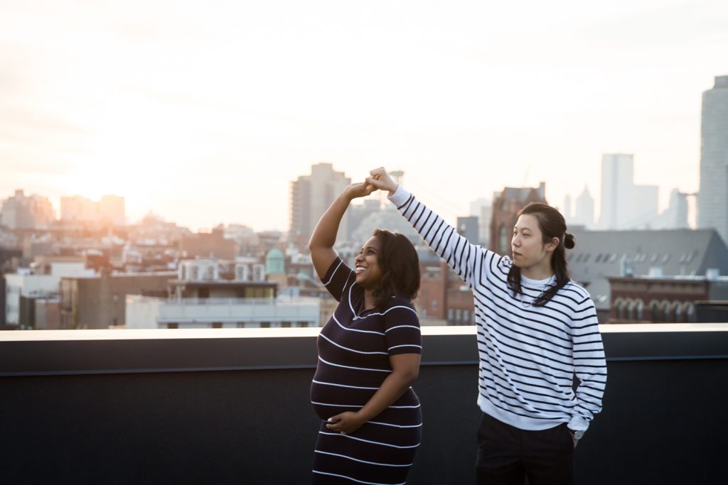 Use that roof! From the terrace, we next moved up to the roof. If you are lucky enough to have an apartment with any roof access, by all means take advantage of it for your photo shoot. You’ll need to check with your building management to make sure photos are allowed. Often there may be liability issues or the building management wants to restrict photo times to not inconvenience other residents. Elizabeth and Jeffrey’s roof space has a beautiful view overlooking the skyline of Manhattan and we hit the roof just as the sun was setting.