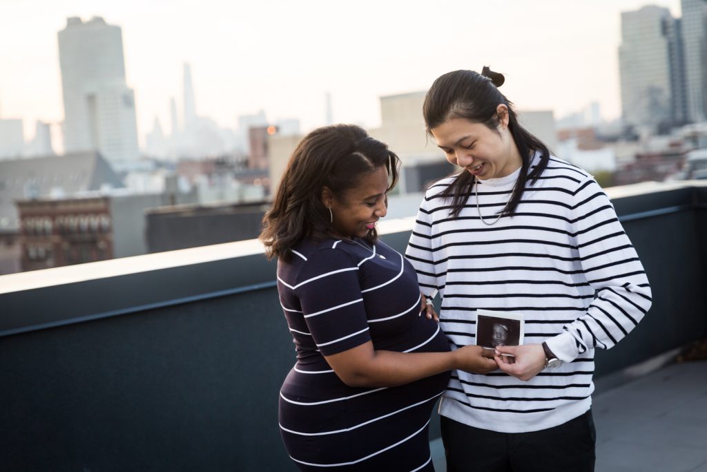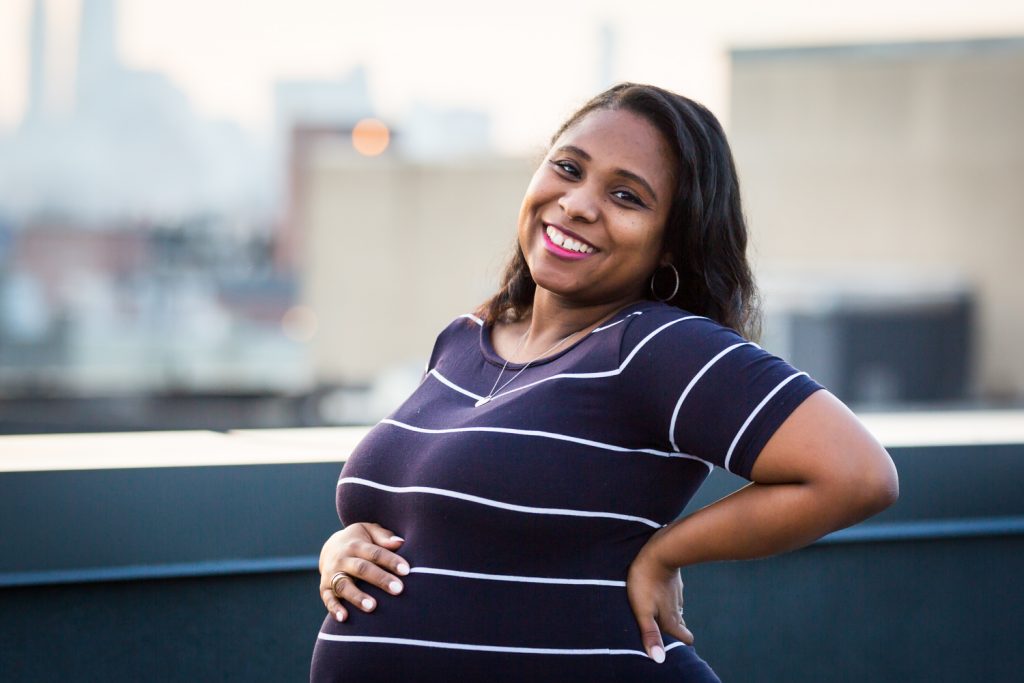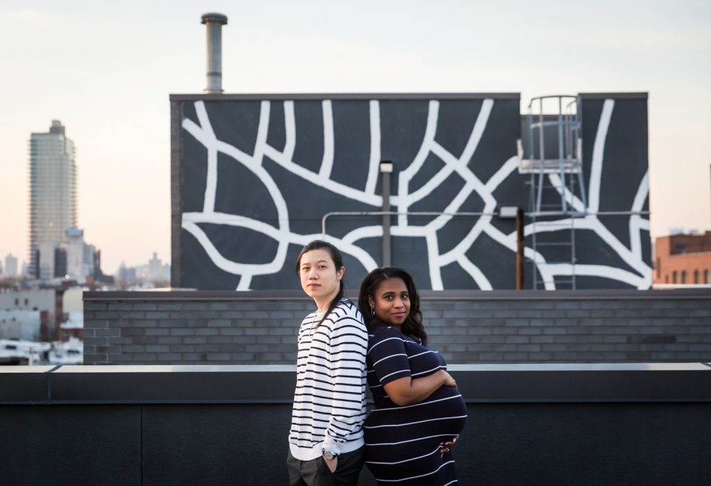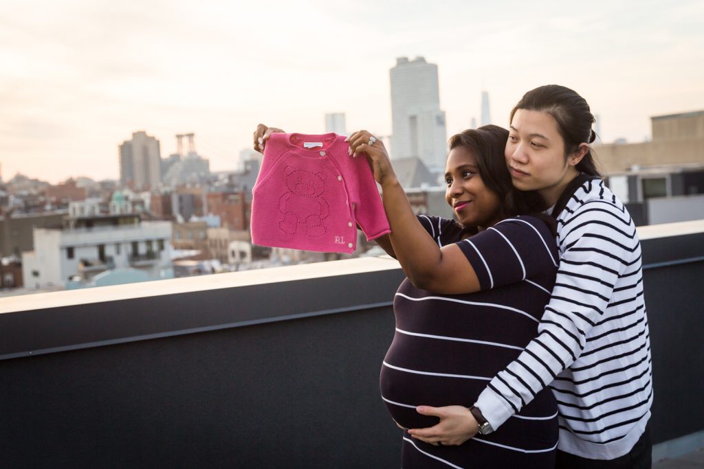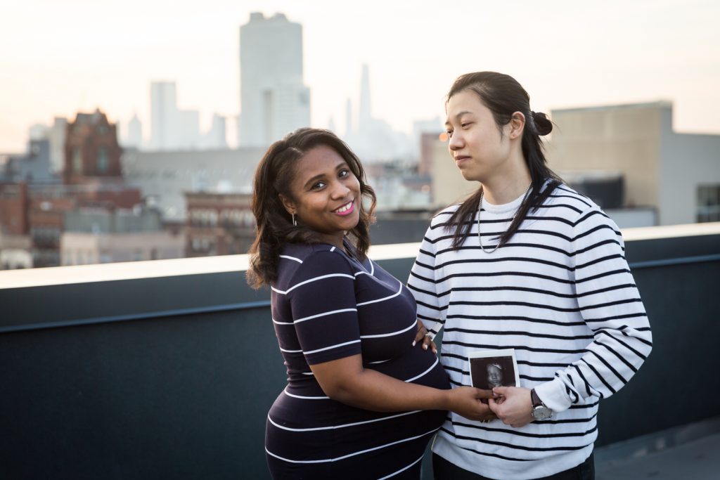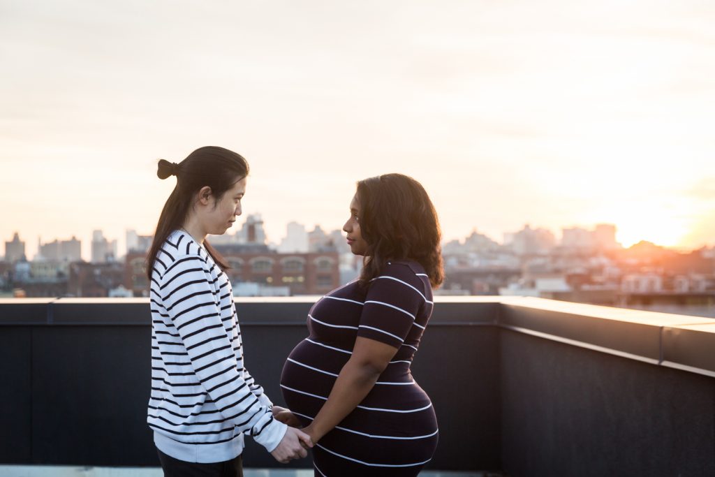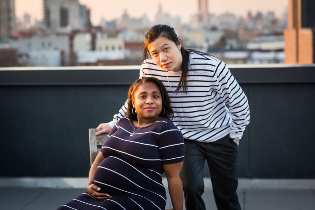 Use that roof! From the terrace, we next moved up to the roof. If you are lucky enough to have an apartment with any roof access, by all means take advantage of it for your photo shoot. You’ll need to check with your building management to make sure photos are allowed. Often there may be liability issues or the building management wants to restrict photo times to not inconvenience other residents. Elizabeth and Jeffrey’s roof space has a beautiful view overlooking the skyline of Manhattan and we hit the roof just as the sun was setting.