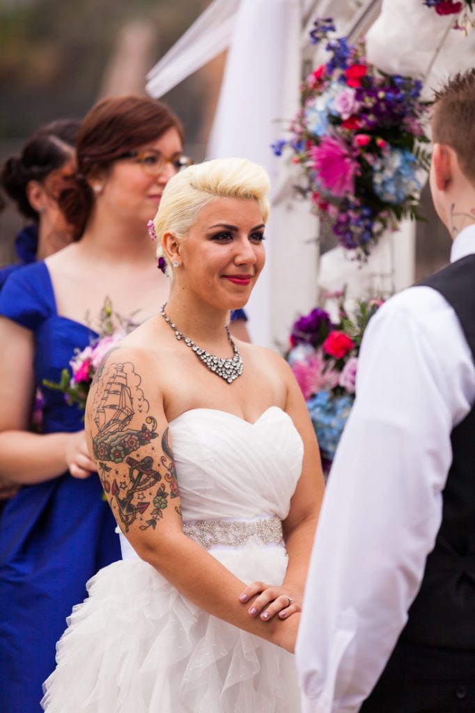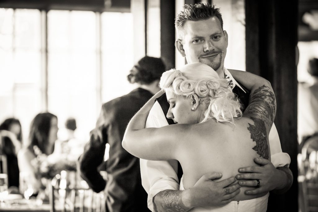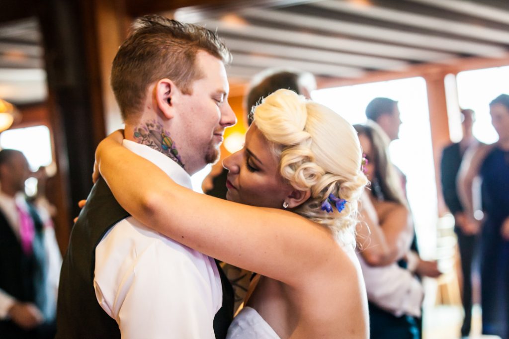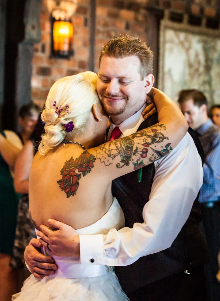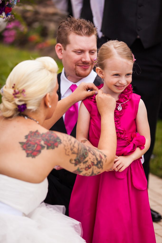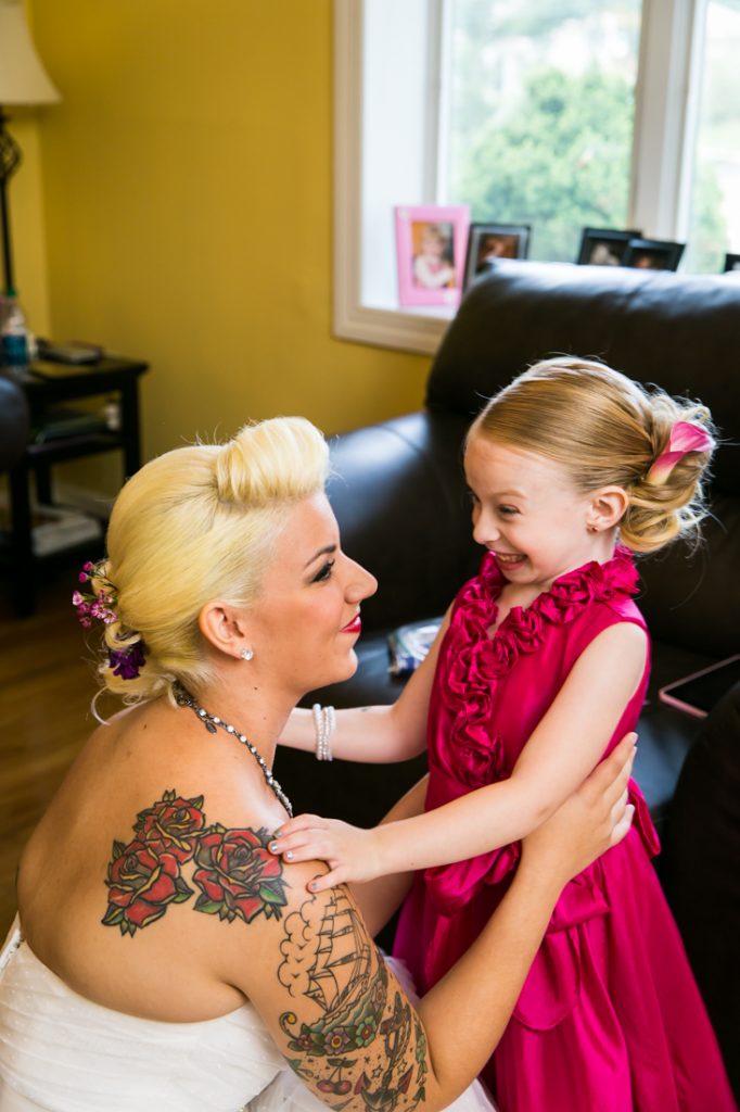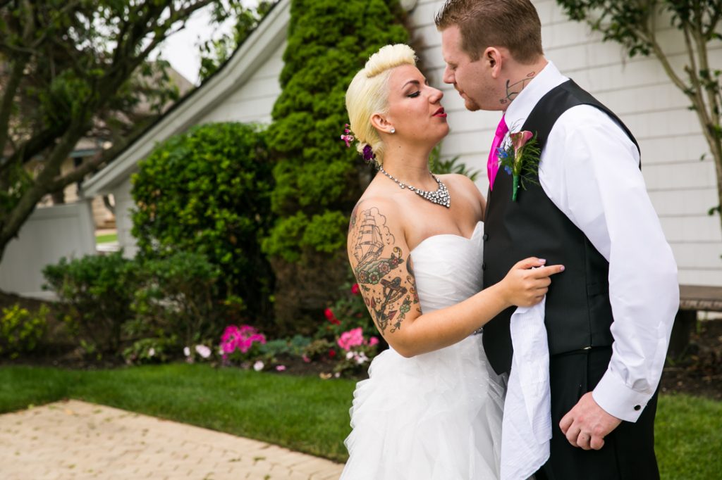 Let’s next meet Jessica and Dan, whose Riviera Waterfront Mansion wedding I recently photographed in Massapequa. This tatted-up couple met the modern way…online. Despite their colorful appearance, Jessica and Dan are an old fashioned couple at heart, and are looking most forward to forming a new family together with Lydia, Dan’s daughter from a previous relationship.