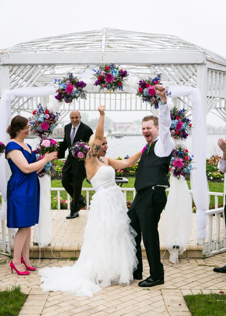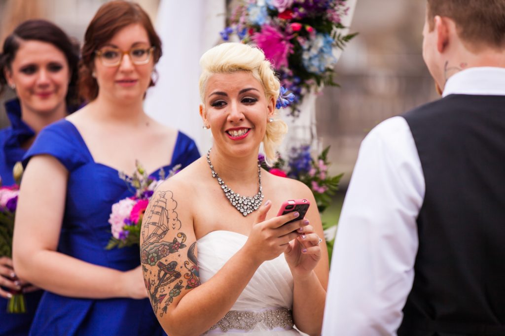 Jessica and Dan’s ceremony had a beautiful view over the water. And while the couple was very modern in reading their vows from their respective cell phones, the heartfelt emotion was timeless. Jessica burst out crying as she walked down the aisle and it caused a sea of tears among the guests. Such a sweet ceremony for such a sweet couple.