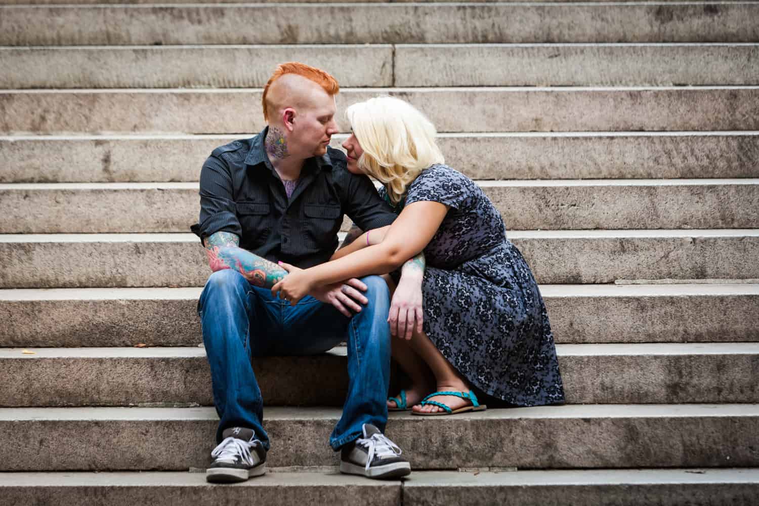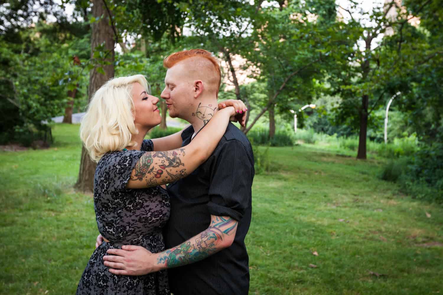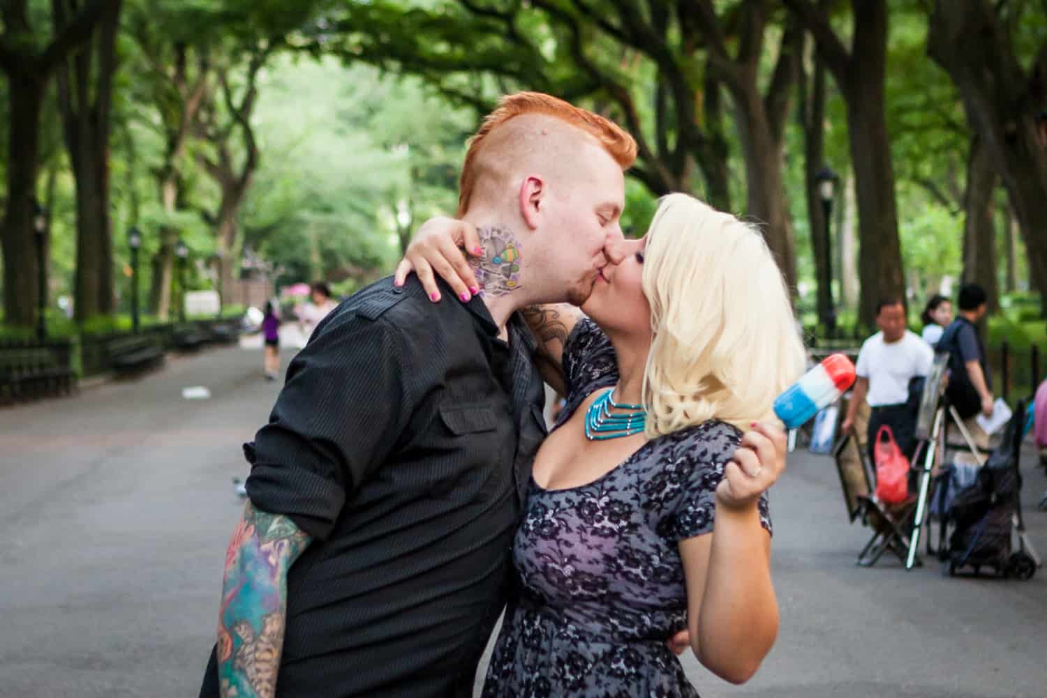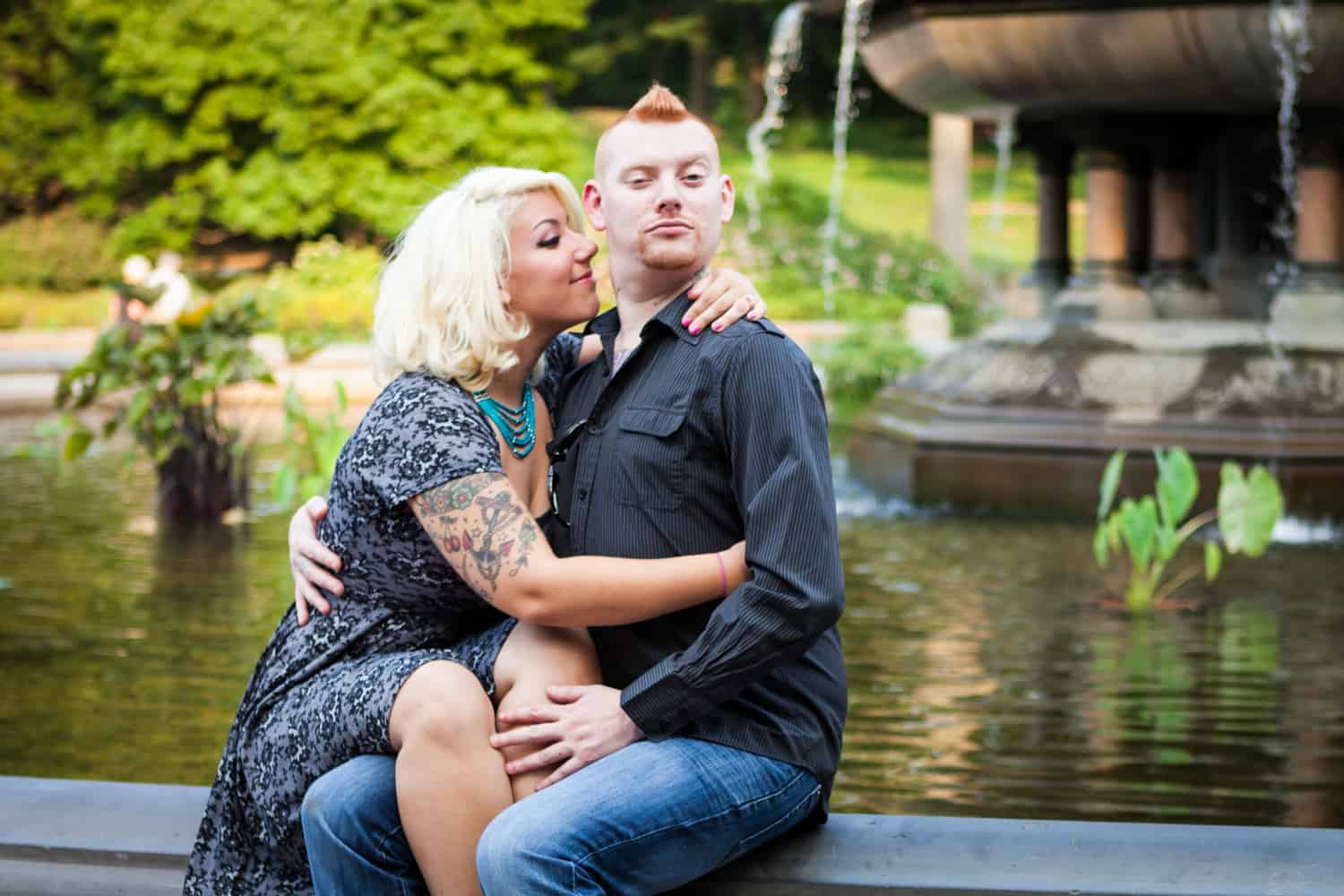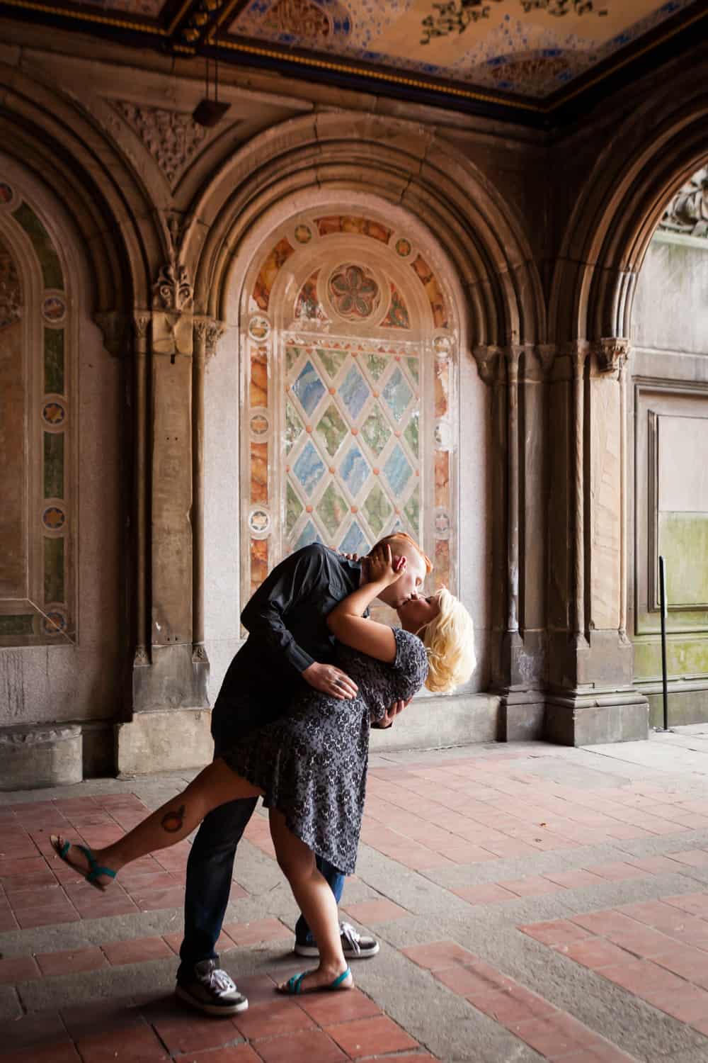 The park was plenty crowded, but these two didn’t mind a bit. In addition to shooting around Bethesda Fountain, we walked over to Umpire Hill and played around on the grass. I love photographing couples who don’t fear a few grass stains. Jessica and Dan will be getting married next year out on Long Island, so until then, enjoy the photos!