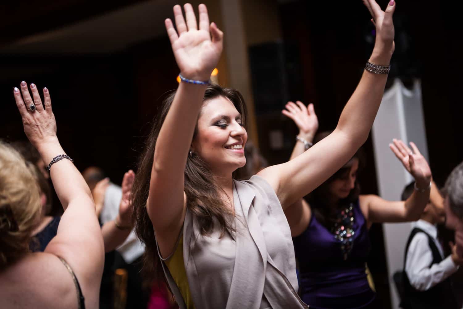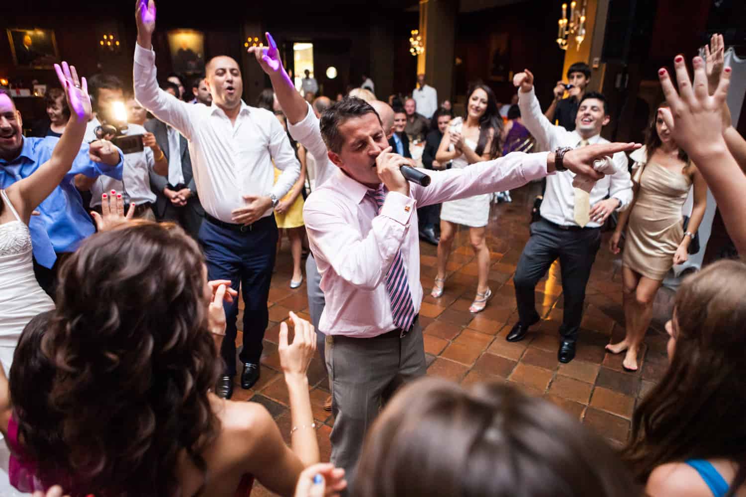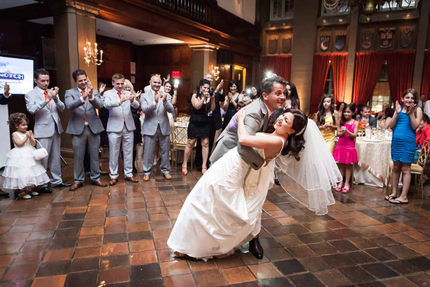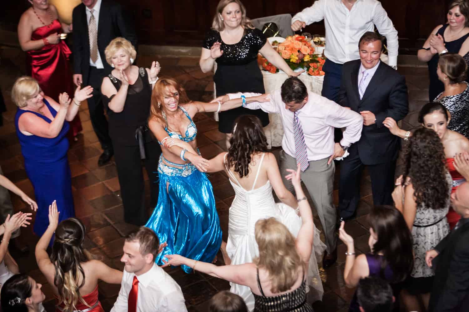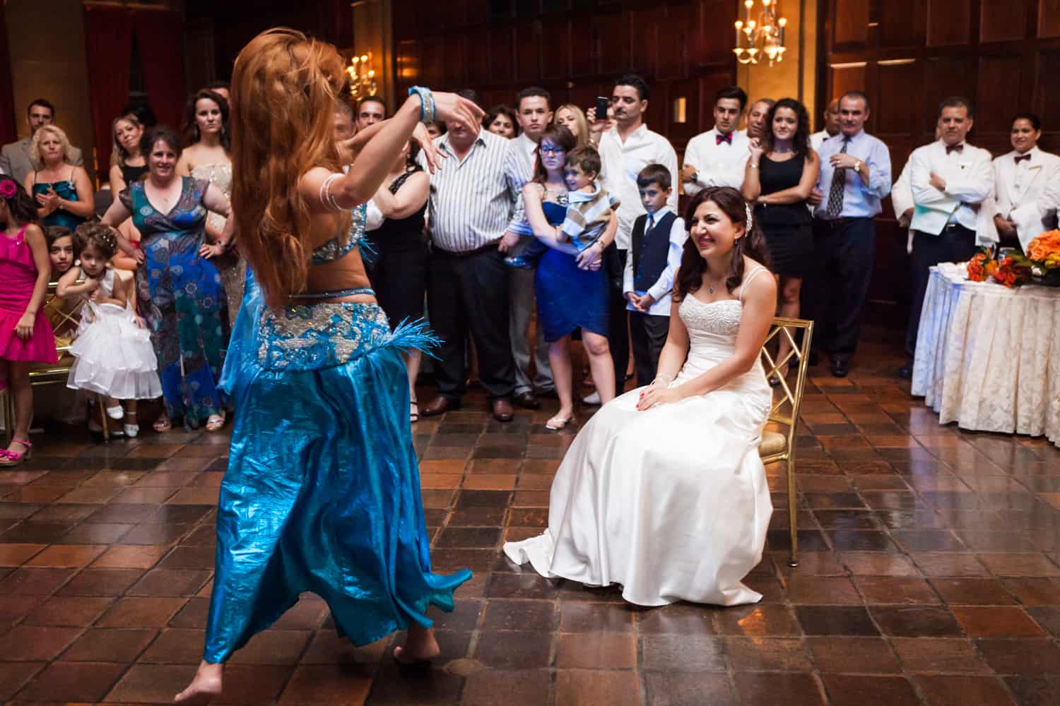 The reception was held at the always impeccably staffed Harvard Club. This wedding marks my first event with an actual belly dancer! As a nod to both family traditions, Annabelle and Nate pulled out all the stops with the entertainment. The crowd was definitely in to it, and just about everyone hit the dance floor. In addition to belly dancing, the performer also did a fantastic sword dance. At the end of the evening, Nate surprised Annabelle by serenading her on the dance floor. Enjoy the pics, and make sure to check out the groom dancing with a full glass of wine on top of his head!