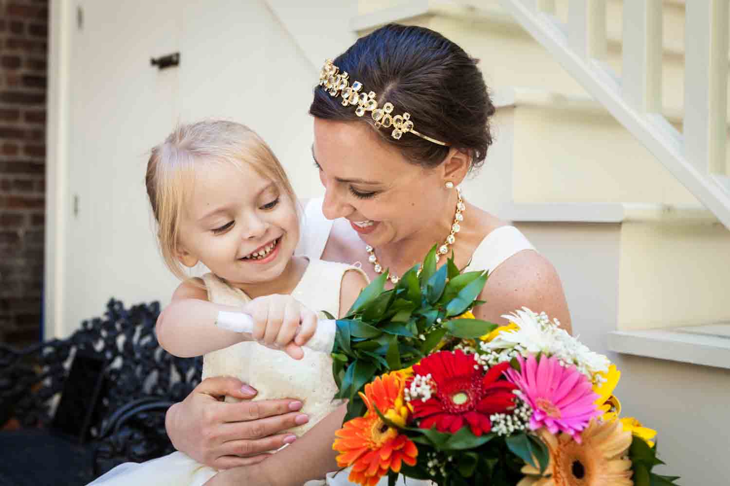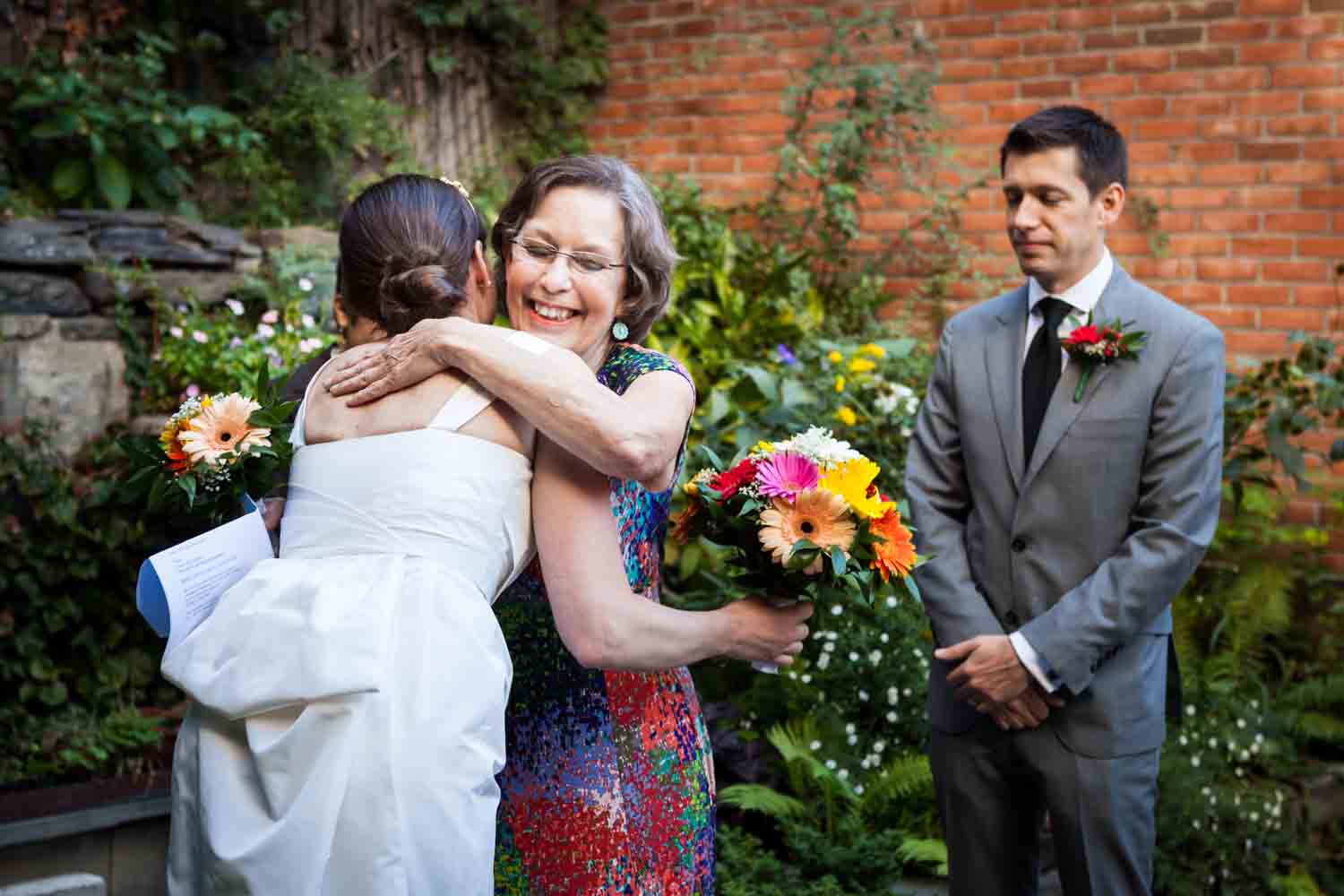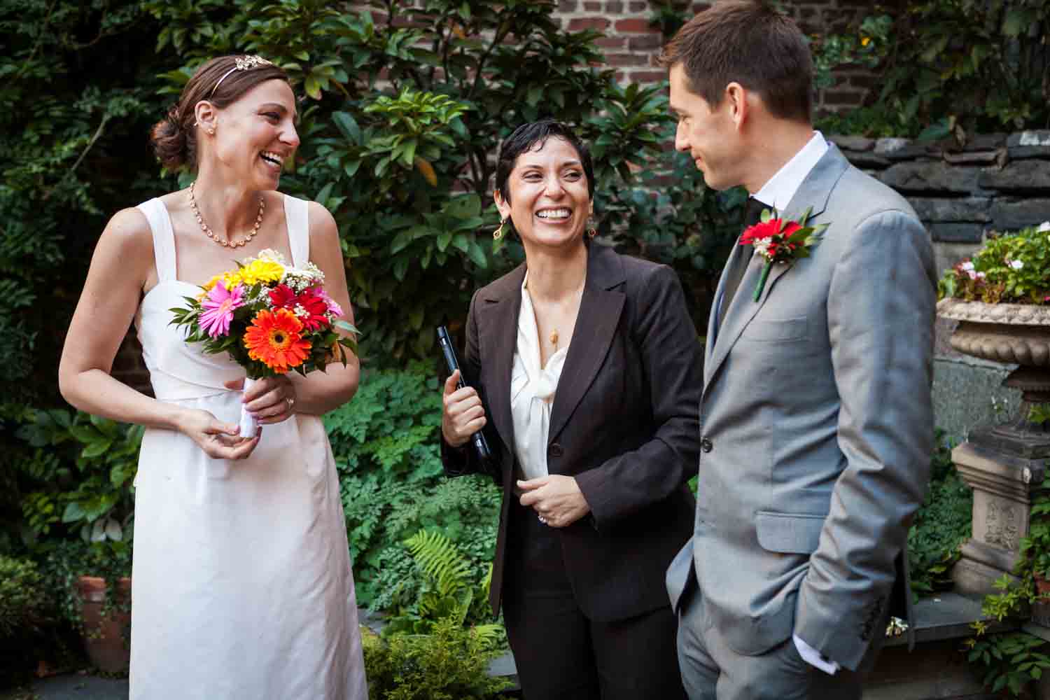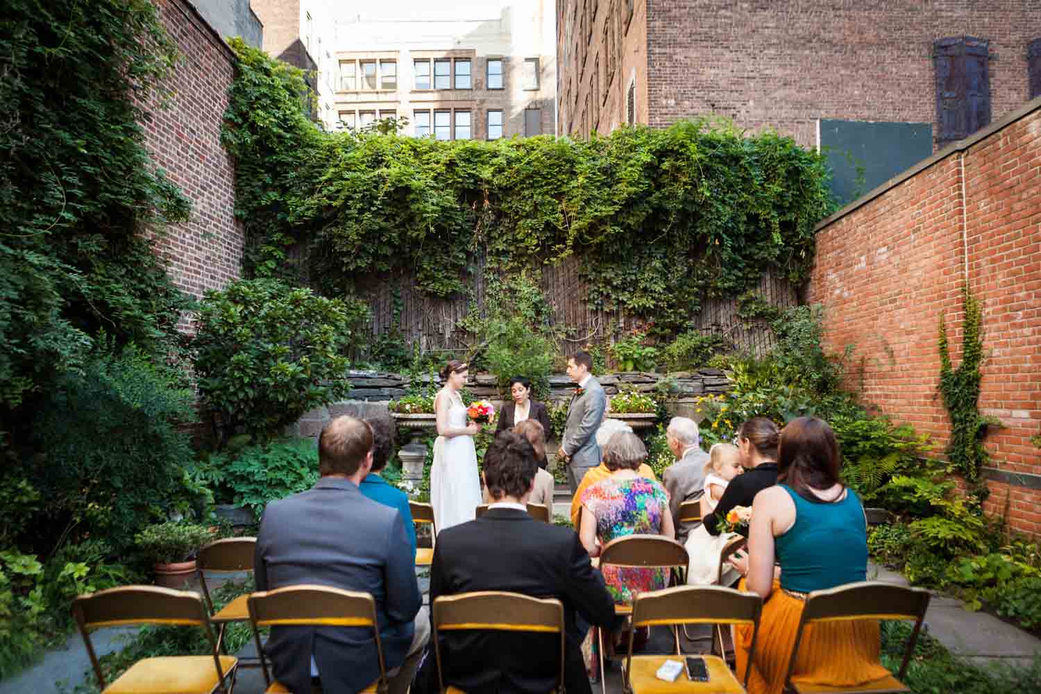 Colleen and Sean had their ceremony on a lovely day in the back garden of the Merchant’s House Museum. If you haven’t checked out the museum, which is located in the middle of NoHo, you definitely should. This lush oasis in the middle of the city is the perfect venue for small weddings. The museum inside is filled with antiques from the 1800s.