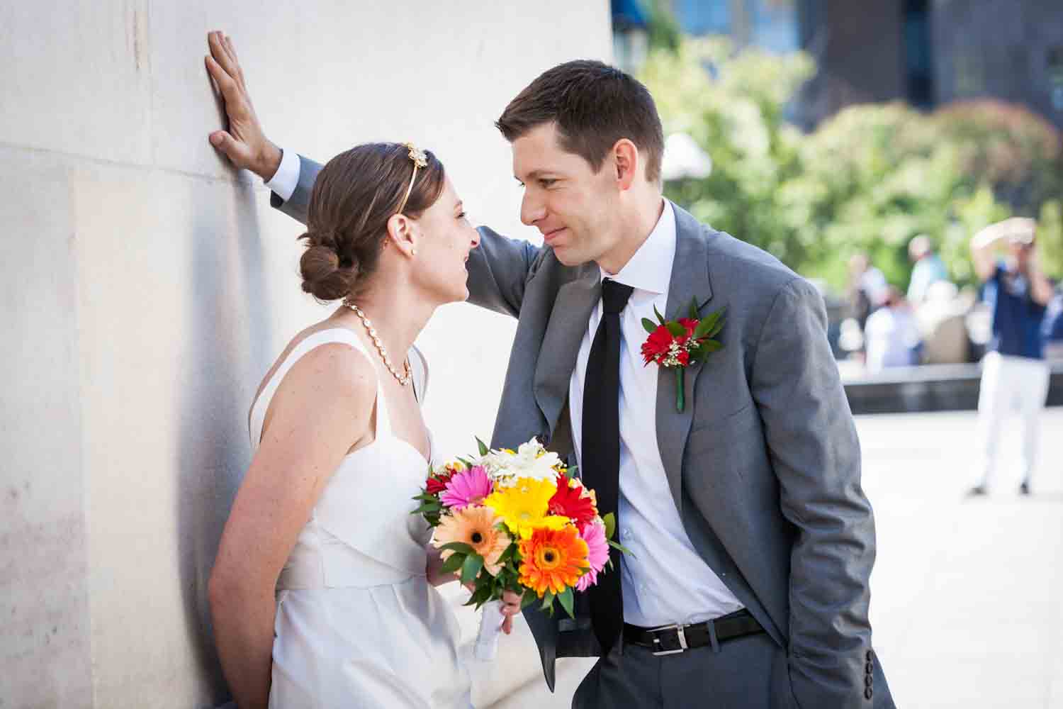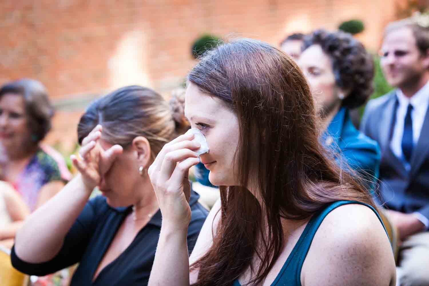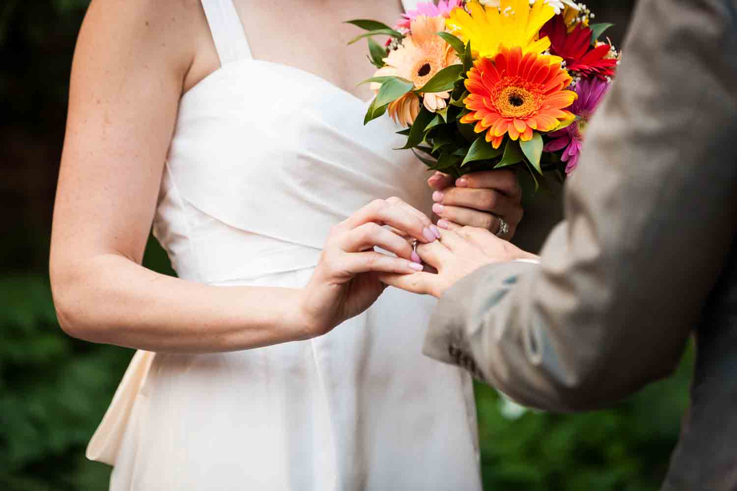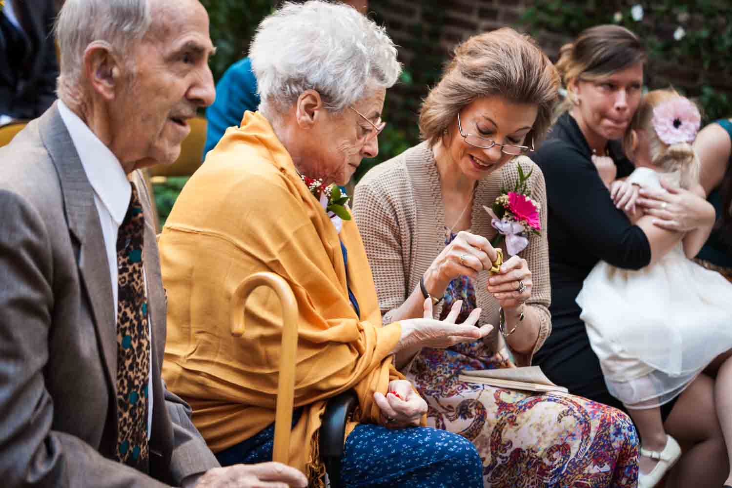 Colleen and Sean had their ceremony on a lovely day in the back garden of the Merchant’s House Museum. If you haven’t checked out the museum, which is located in the middle of NoHo, you definitely should. This lush oasis in the middle of the city is the perfect venue for small weddings. The museum inside is filled with antiques from the 1800s.