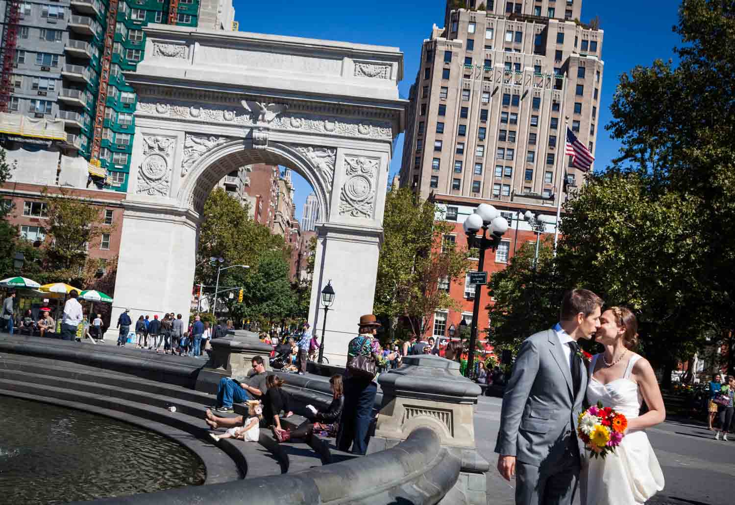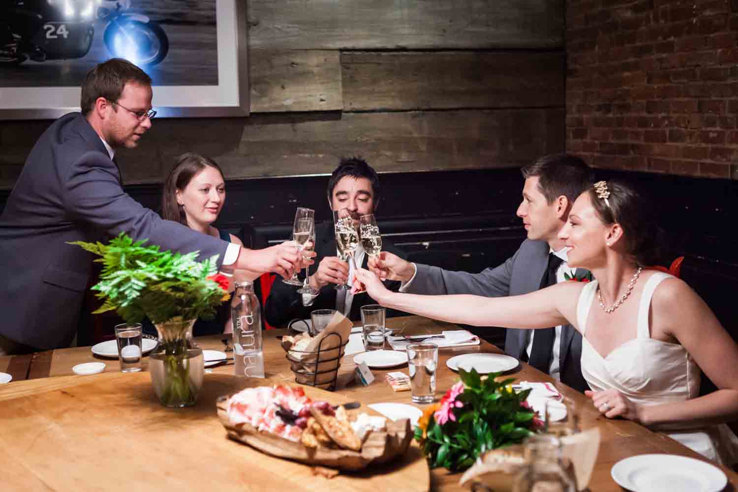 After the couple exchanged vows, we visited Washington Square Park for a few quick portraits. Our final stop was the restaurant Trattoria Cinque for the reception. The servings are huge, and the service was outstanding. Again, if you are having a small wedding, then the small room in the back of the restaurant is ideal. With the brick walls and large wooden table, the room has a very cozy atmosphere. Enjoy the pics!