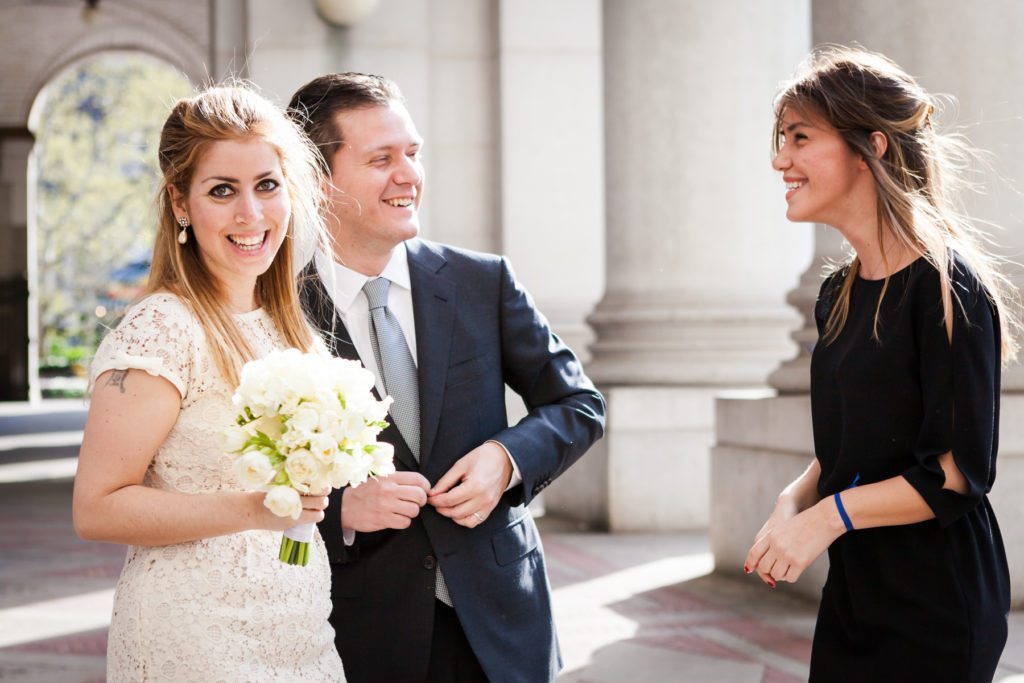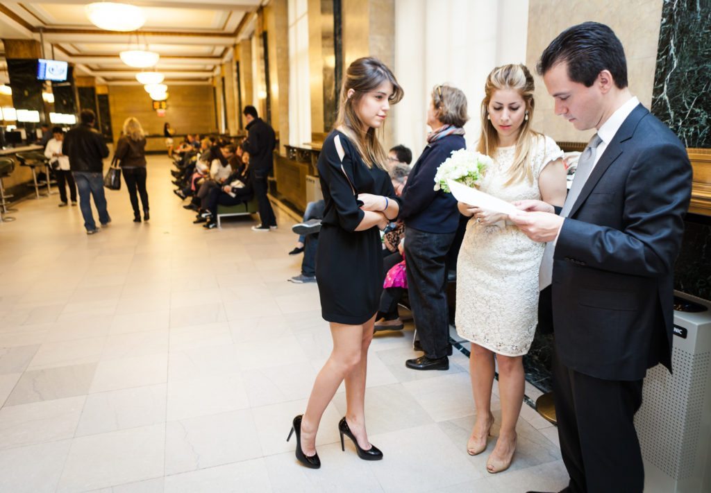 I recently had the great honor of photographing the wedding of Seda and Omer at their Manhattan Marriage Bureau wedding. They are a lovely couple who were joined by Omer’s sister (and wedding witness!), Layla, as they patiently waited for their number to be called. The whole process took approximately one hour on a Friday morning. The lesson here is that if you are going to get marriage at the Manhattan Marriage Bureau on a Friday, then make sure you get there early. Weddings taking place in the afternoon can include a wait of two hours or more.