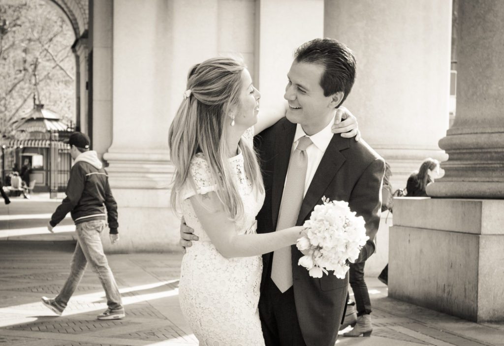 After the brief ceremony, we took some portraits both in the wedding garden, located just outside of the City Clerk’s office and on the steps of the NYC courthouse. Enjoy the photos!