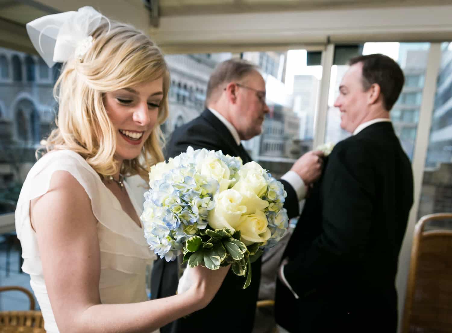 I am so pleased to share with you Tamara and Brian’s Library Hotel wedding photos! As you can easily see, Tamara and Brian are a fun, fun couple whose wedding was filled with laughter and love. The Library Hotel in NYC proved to be the perfect venue for this intimate event. With fantastic views near Grand Central, the party took over the entire roof deck bar of the hotel. Let’s get all the details in today’s blog post.