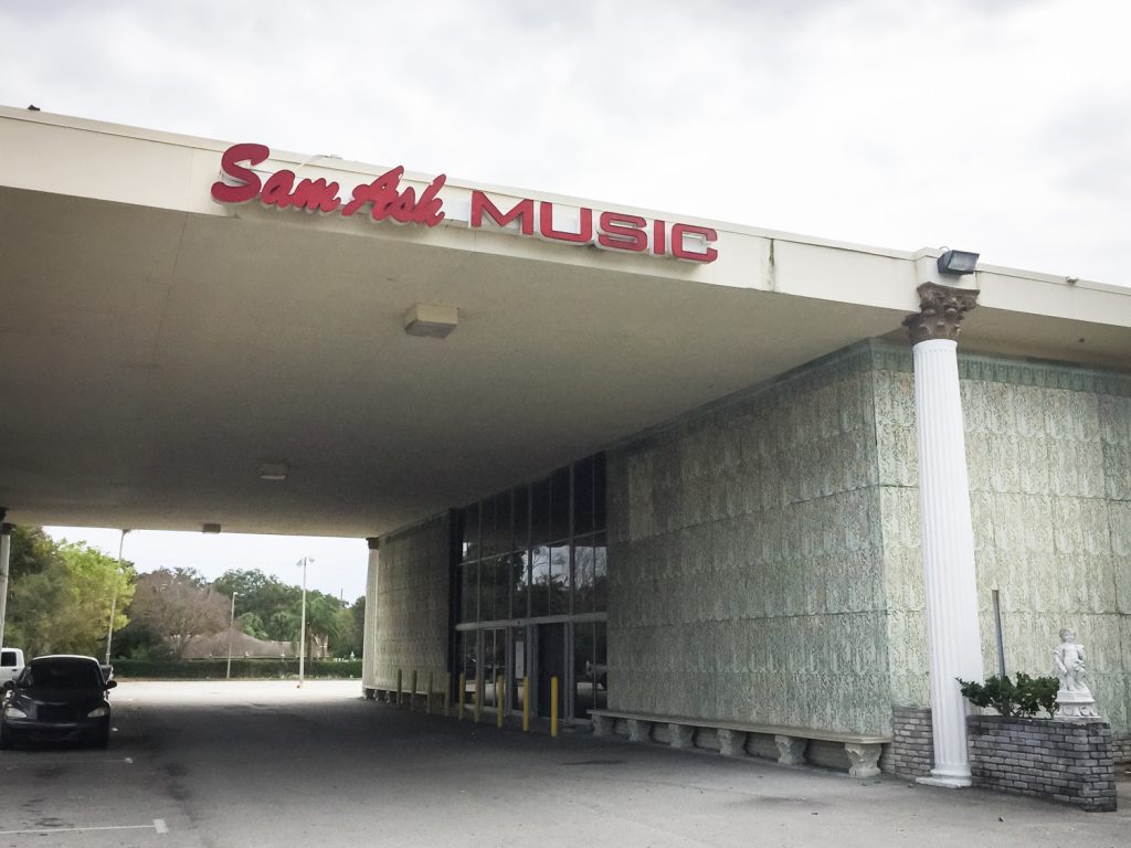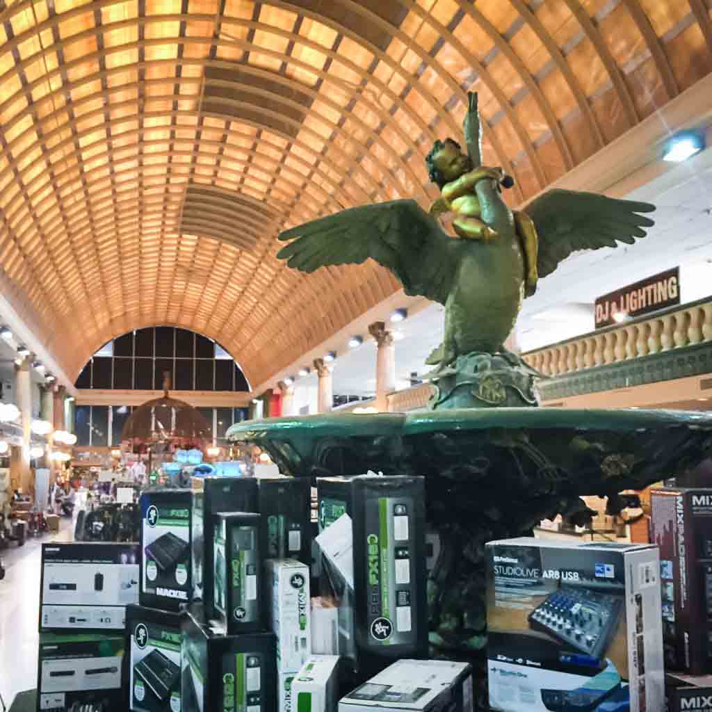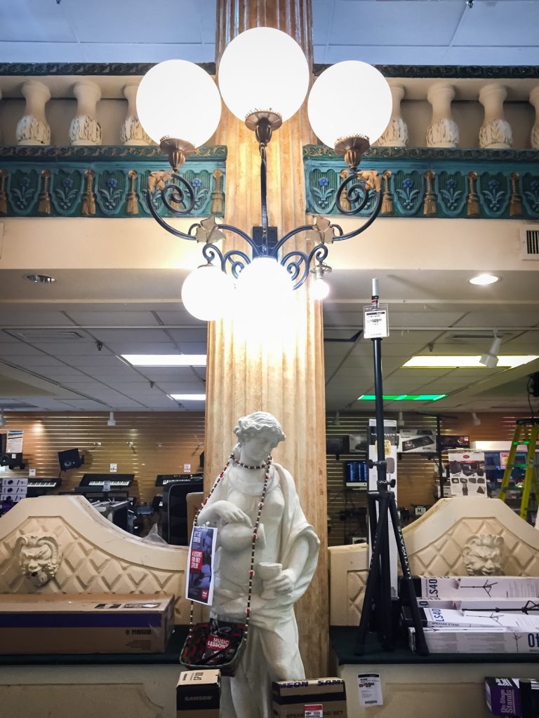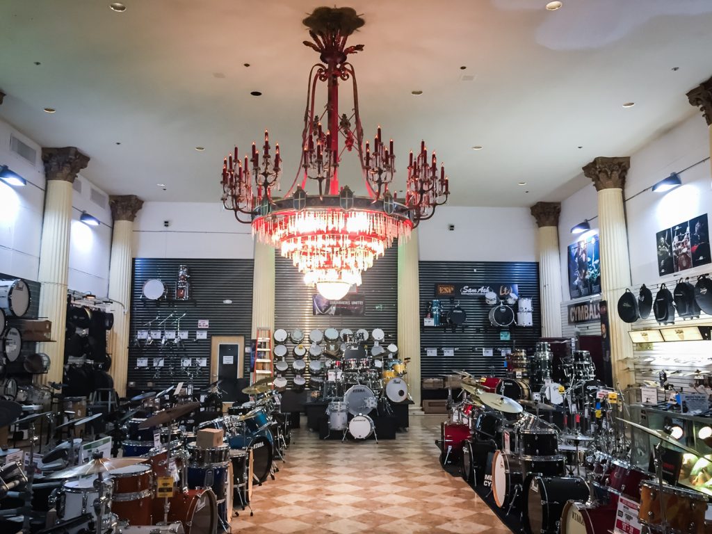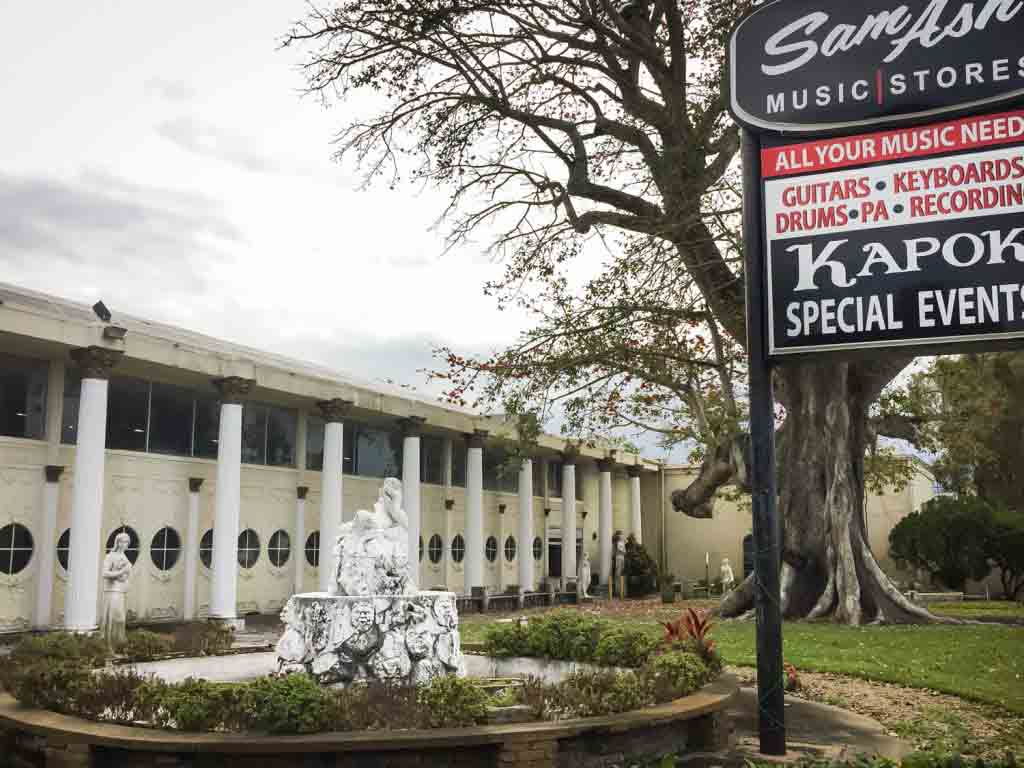 Shirley, at the Kapok Tree Event Center and Gardens, was kind enough to give me a tour of the building and grounds. My memory of the Kapok Tree comes from a family wedding that was held at the restaurant when I was just a little kid. The restaurant originally had shops on the lower level, tropical plants everywhere, and even birds in cages. For a kid in Florida, a visit to the Kapok Tree was a visit to another world, and I loved every minute of it. It is a bit surreal to now see guitars and percussion equipment side-by-side with the Grecian statues, but it brings an extravagant twist to the usual musical instrument shopping experience, which I am sure would have made Richard Baumgardner smile.