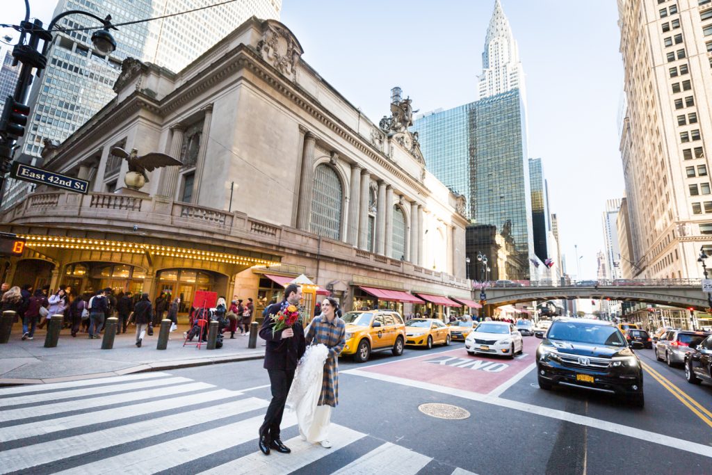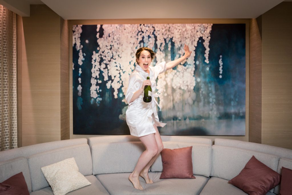 Kerry’s bridal suite at the Grand Hyatt Hotel proved to be wonderfully spacious. There was even room for her to jump on the couch with champagne bottle in hand. We did a first look in the suite with Kerry’s father, before leaving for Grand Central Terminal to have a first look with Patrick.