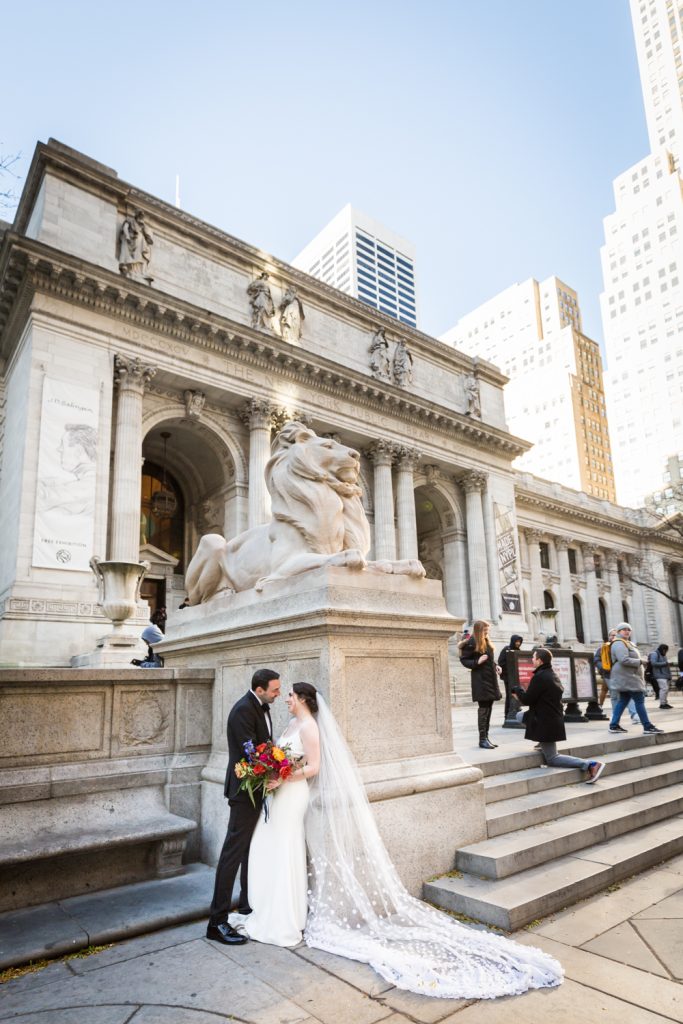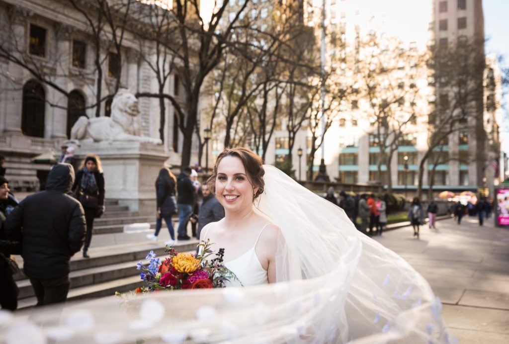 Kerry also had a beautiful veil which she wanted to on for photos. I love a good veil, so I was all in favor. That said, wearing a veil on the streets of Manhattan is a cumbersome chore, so be prepared with extra bobby pins and know how to take the veil on and off if you do need to remove it at some point.