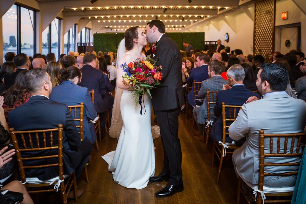 Time was short before the ceremony was to begin, so unfortunately we weren’t able to take advantage of the beautiful outdoor space and large windows at the Water Club. I would love to have had at least 30 more minutes to take more photos of the couple out on the deck. I was still able to take some amazing photos of the Queens and Manhattan skylines during the wedding, but my recommendation is that you use every inch of space the Water Club has to offer.