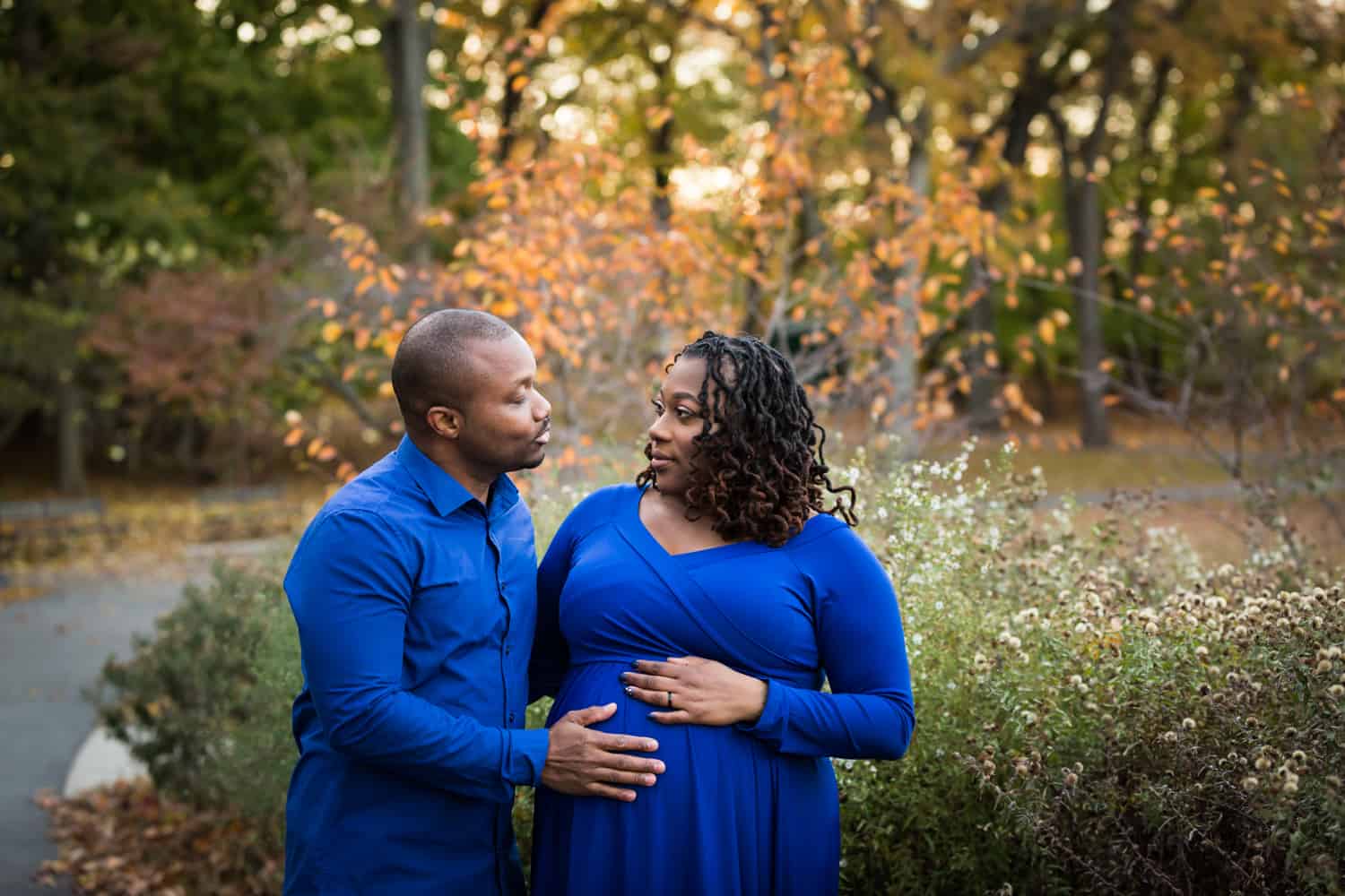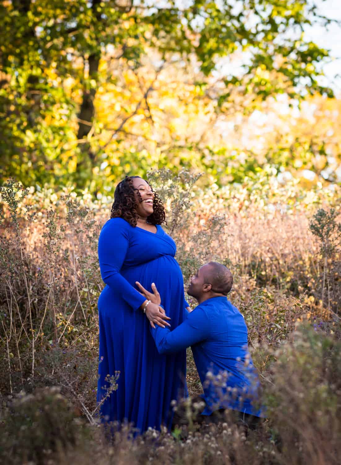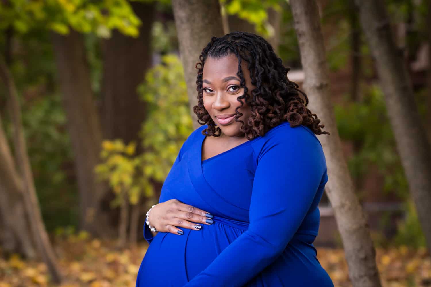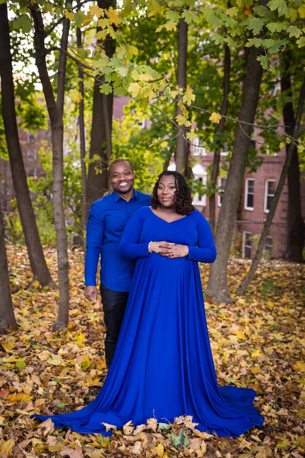 The good news is that you now have lots of options for looking great while pregnant. You can always choose to go for a casual, natural look. You can also go in the opposite direction and become a full-on fashionista as Niya did at her recent maternity portrait session. A more high fashion look can mean showing off your curves with a body-conscious outfit, or going for flowy drama with a sweeping dress that both shows off your new outline and uses the extra fabric for dramatic effect. One request: don’t show too much skin. Leave a little mystery, please.