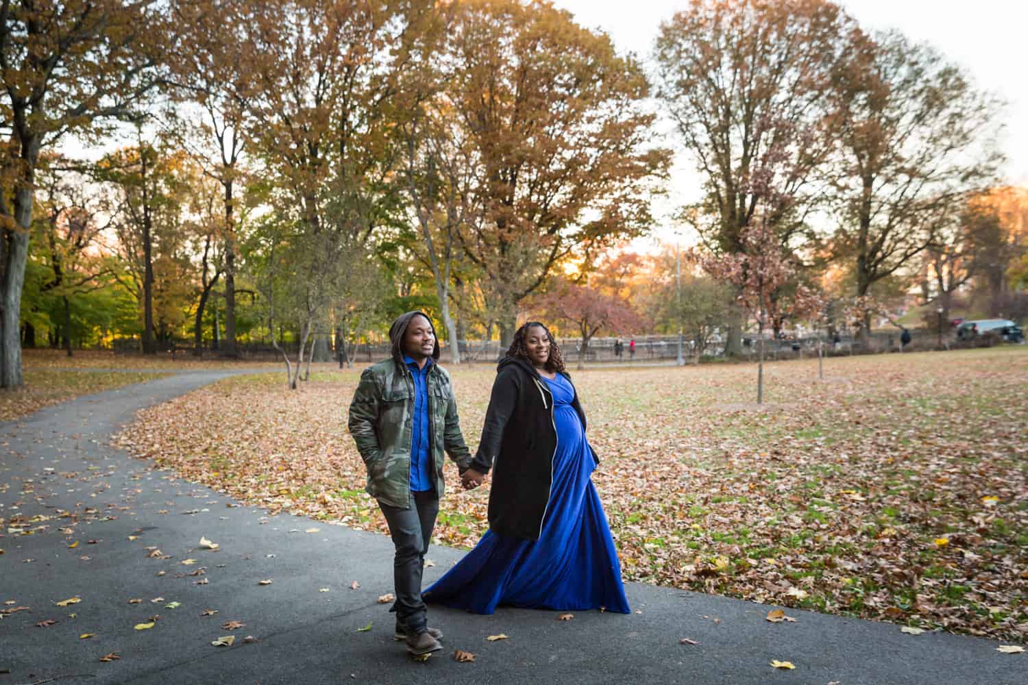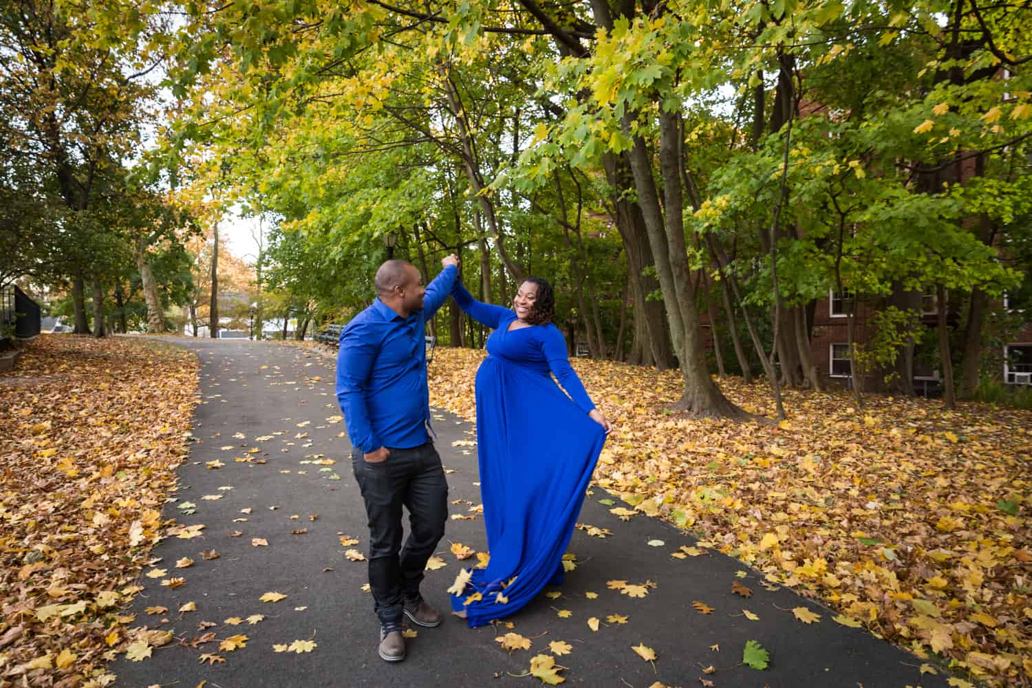 Parks. Parks are always a good location, because you can get a variety of backgrounds. As shown in Niya and Gladimir’s photo shoot in Forest Park, you have the option of tree-lined pathways and then more fall-like foliage.
