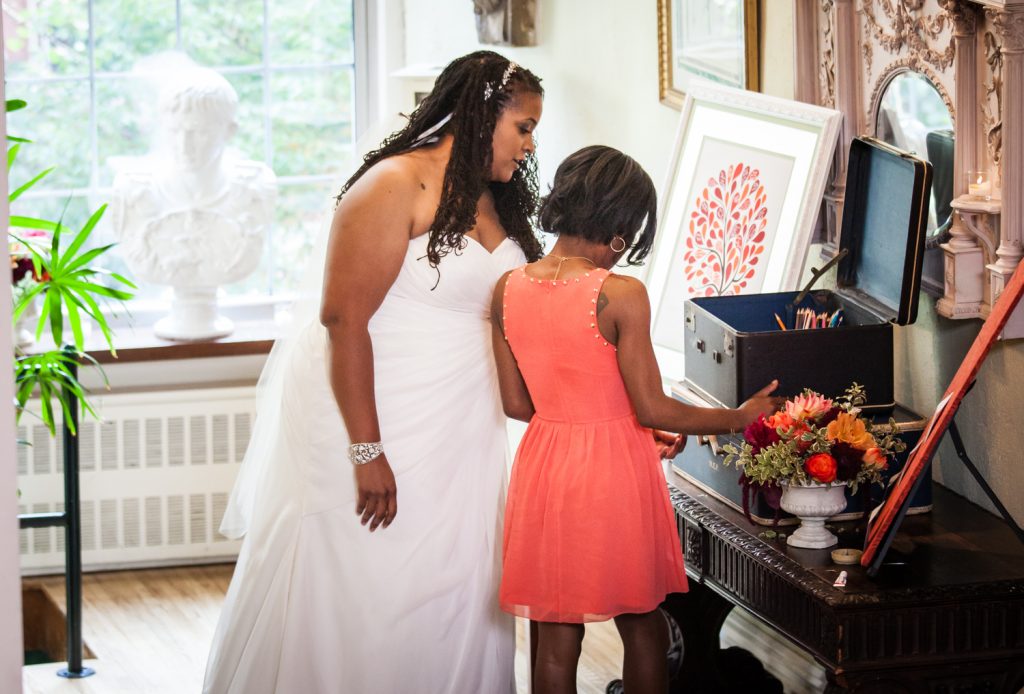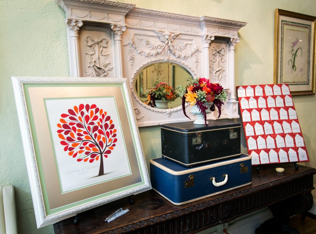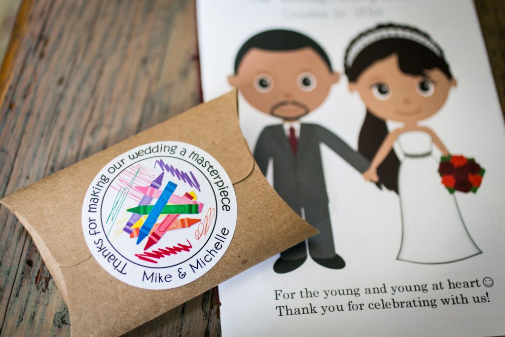 Every detail of this intimate wedding was designed and coordinated by Michelle. Michelle focused on including unique details that reflected her and Michael’s elegant, artistic tastes. From the vintage-inspired, engraved wedding cake silverware, to the personalized coloring books — no detail was overlooked.