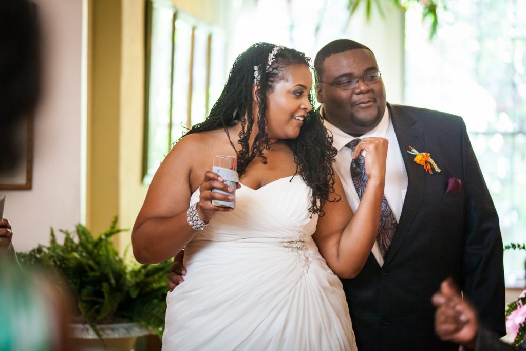 Furthermore, Michelle incorporated two fun DIY projects into her wedding: the first was to create personalized pens with her wedding colors using moldable clay. These pens were given to guests to use with their ‘mad libs.’ The second project was to create thank you packets of homemade cookies for guests to enjoy when they left the wedding. Michelle simply bought craft bags and ribbon separately at a craft store, then attached the ribbon to the bag using a hole puncher. She used thank you tags and a customized monogram stamp to finish the bags, which she found on Etsy. The packets included such tasty flavors as chocolate chip walnut, dark chocolate chip, oatmeal raisin, and dark chocolate peanut butter cup. Guests adored the homemade touch.