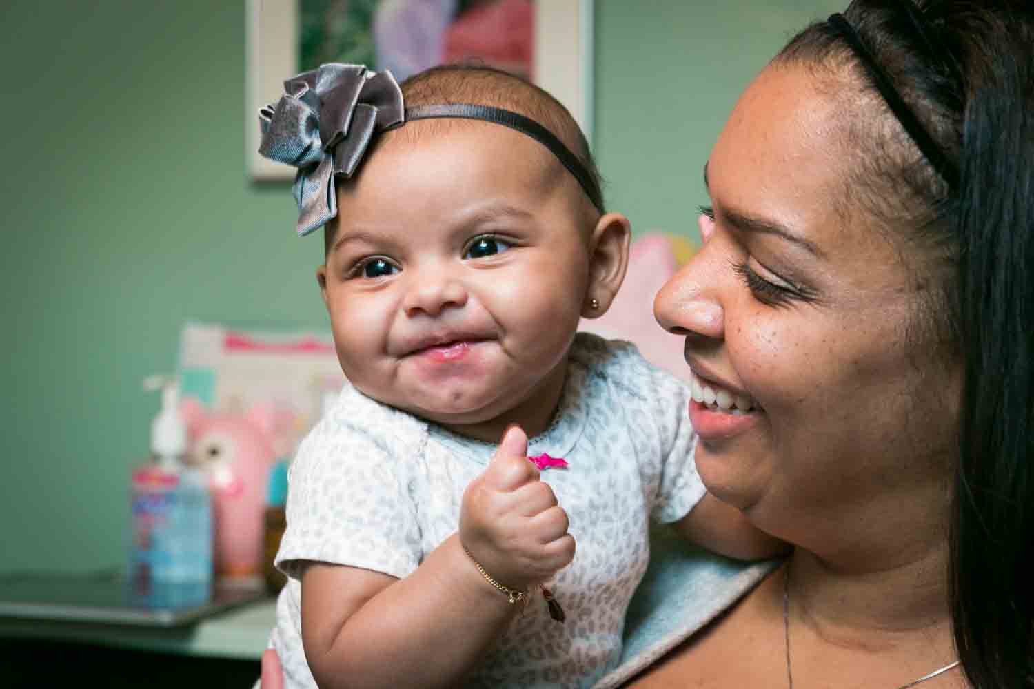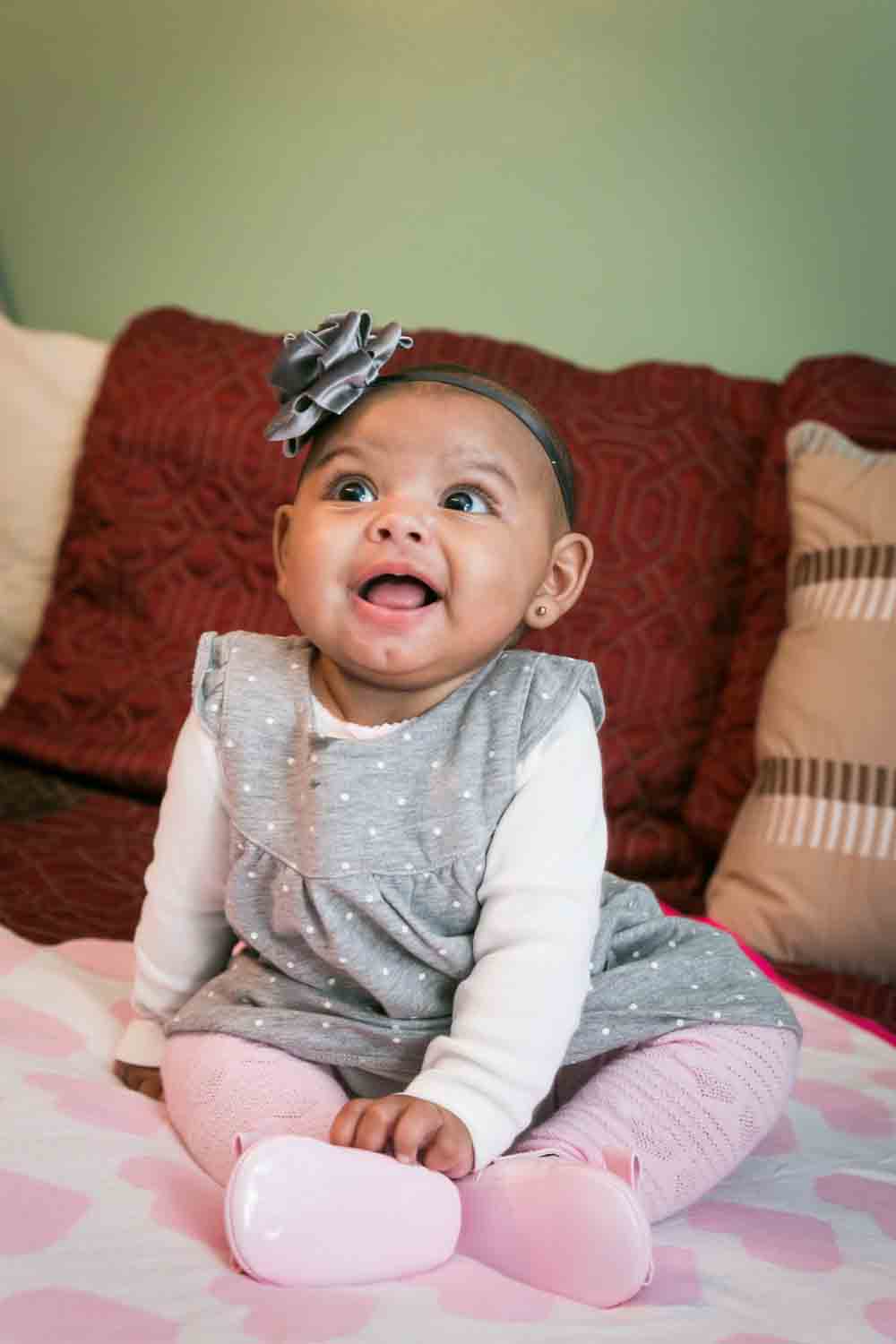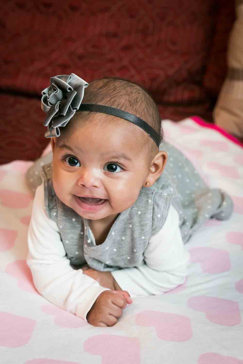 The weather, however, was a bit uncooperative, and Mikaela wisely made the choice for us to continue the photo shoot in Nancy and Ralfi’s apartment. As learned from this shoot, always have a backup location in mind and bring along lots of snacks and entertainment for the little ones. Nancy was totally prepared with a bottle and lots of toys. And one other item to note — this family portrait included the ENTIRE family: those with fur and without.