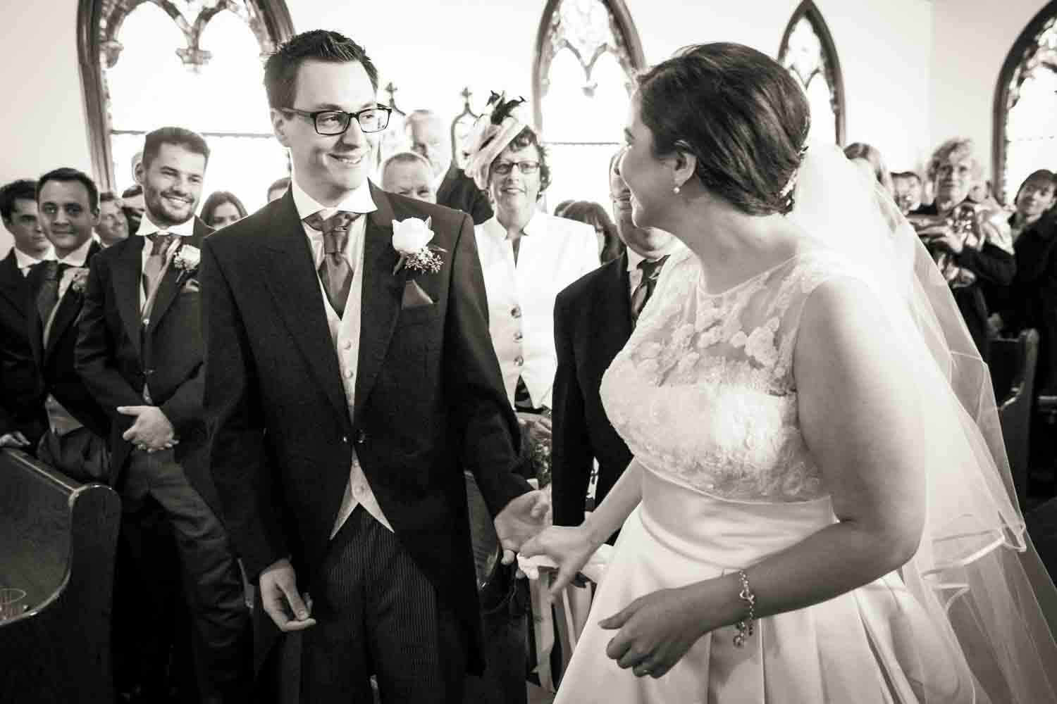 In case you are unfamiliar with the Chapel of St. James, the church was established 1895 in the town of Pennington, New Jersey by a community of Irish immigrant Catholic families. The church grew in size, but the chapel has retained its charm and beautiful stained glass windows. For Kate and Stuart’s ceremony, the couple chose to uphold tradition and not see each other until Kate walked down the aisle. The final moment when Stuart saw Kate for the first time nearly brought me to tears!