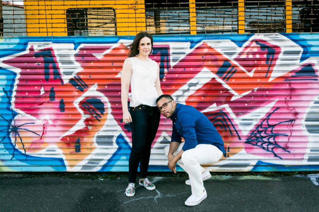 Back in my beloved Queens, Astoria Park is a fantastic engagement shoot location. The park is large, and depending upon when you are in the park, you can get shots with the empty pool for a more industrial look. Even better, there is the Welling Court Mural Project at the intersection of 30th Avenue and 125th Street where you can get great shots with graffiti. The archway underneath the bridge is lovely, and there are lots of cute little restaurants nearby for a glass of wine after your engagement shoot.