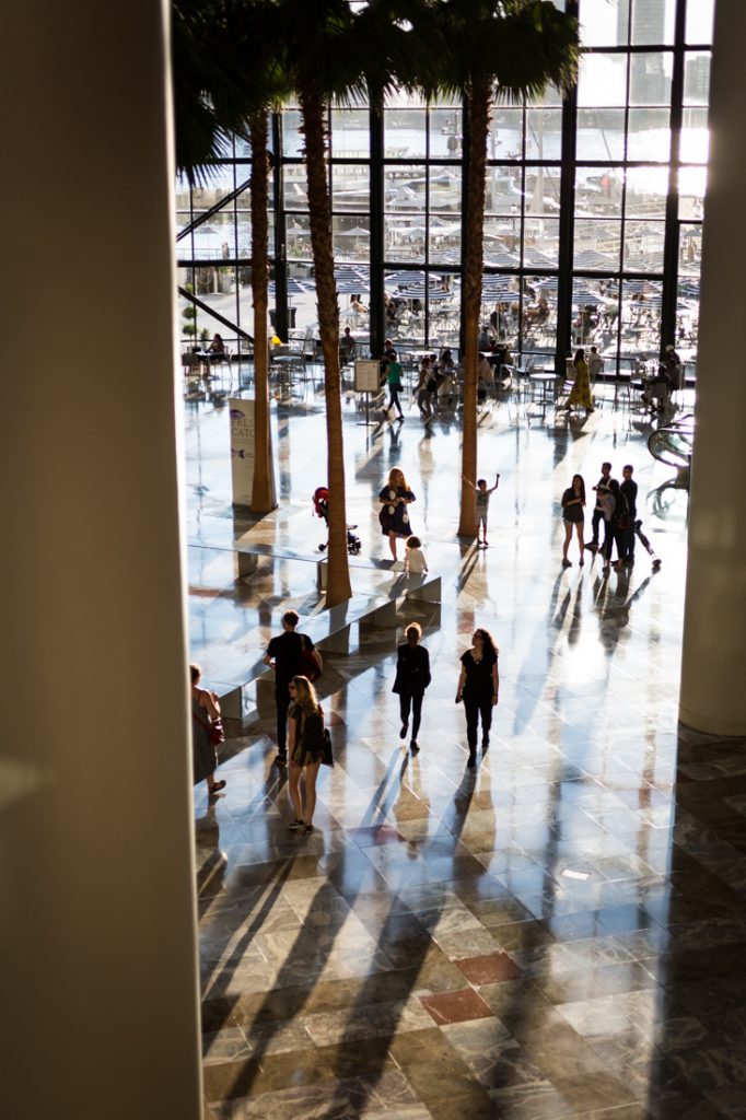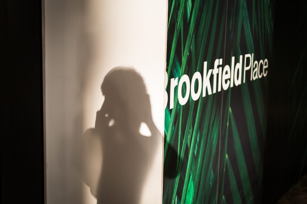 Brookfield Place has plenty of high ceilings and windows, which equals wonderful light, but there is a lot going on in the frame. There are lines and shadows everywhere caused by the complex architecture, which means you can’t take a clean photo unless you use a boring wall as your background. And while there are great views of the city from the inside looking out, here again, the windows all have frames cluttering every view.