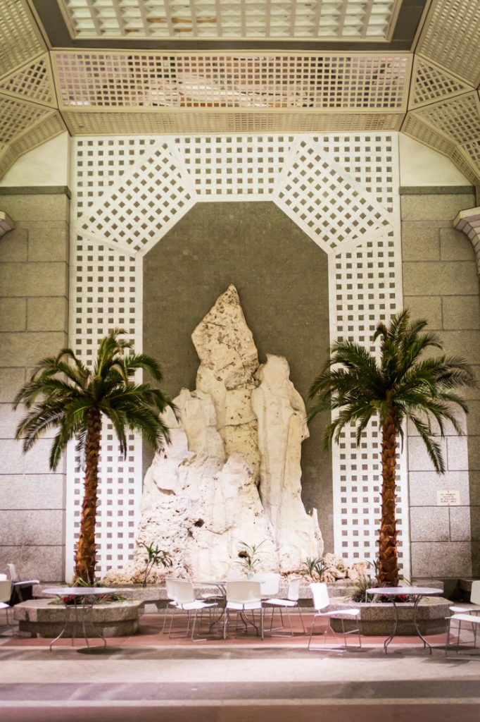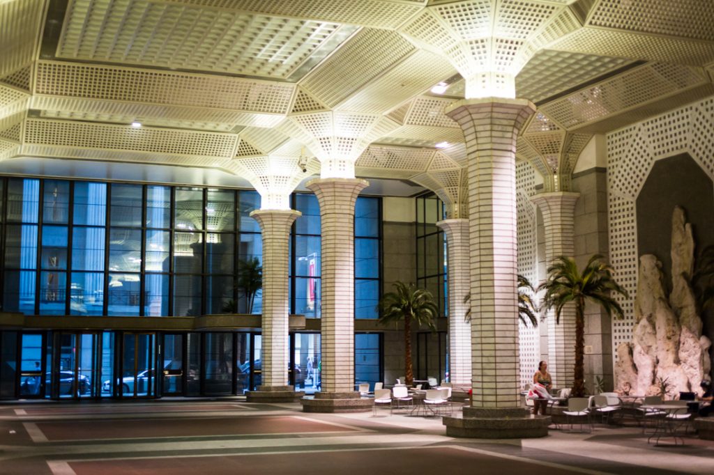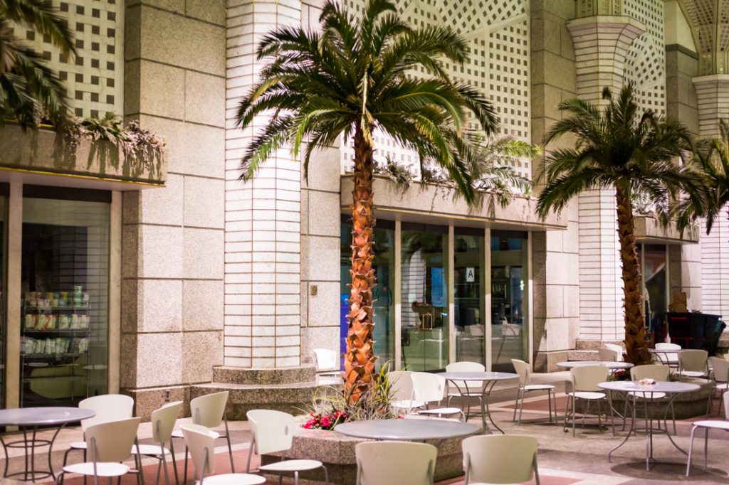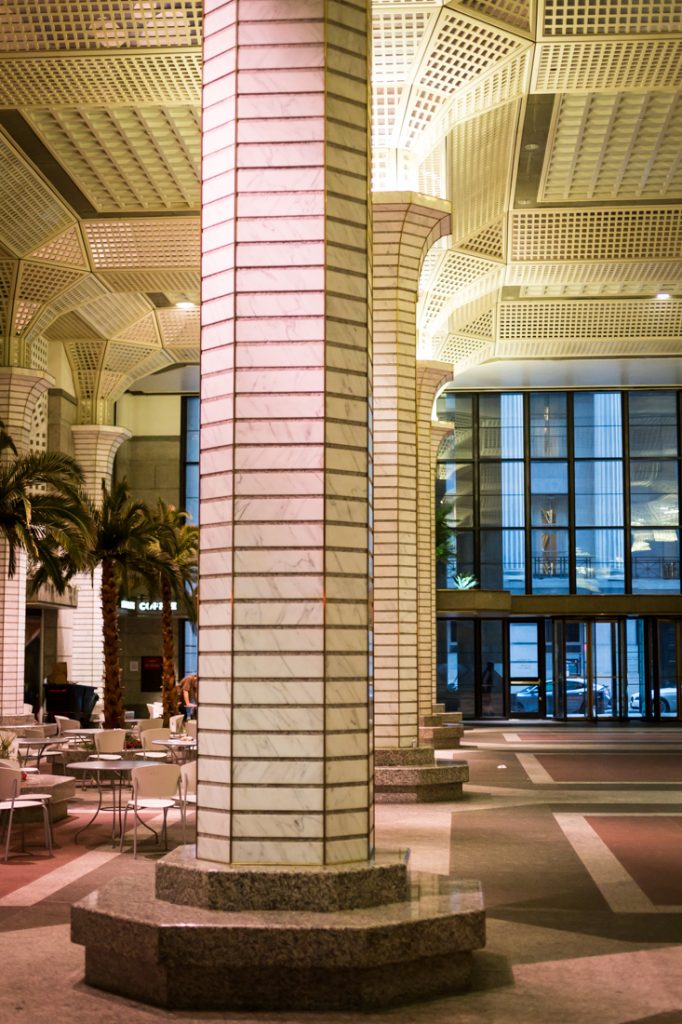 When I visited at 7:00 p.m. on a Saturday, no one was here. The space felt abandoned. While this public atrium is probably very popular during the lunch hour for office workers, it was dead on the weekend.