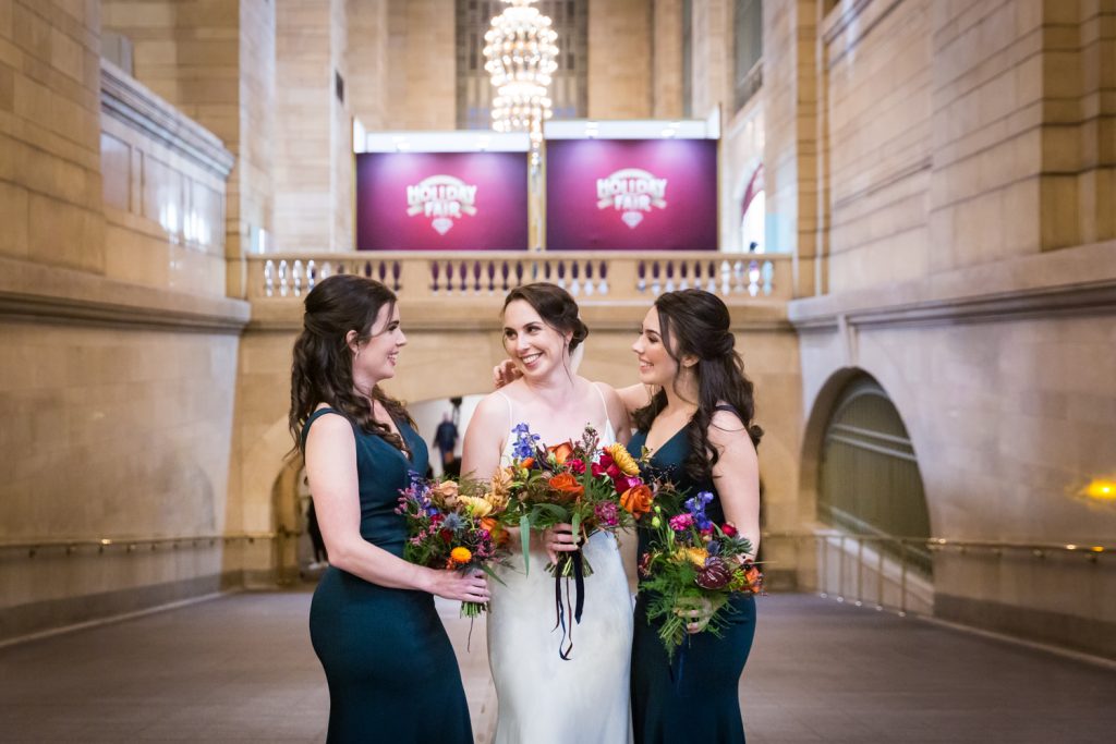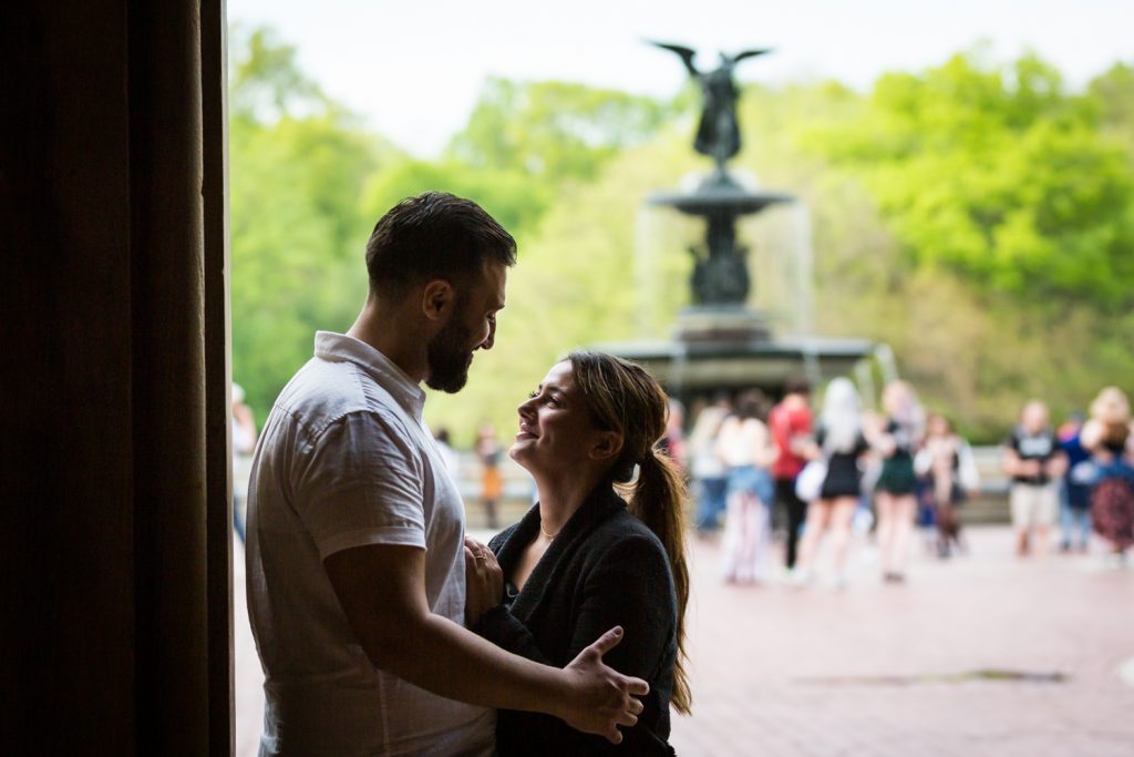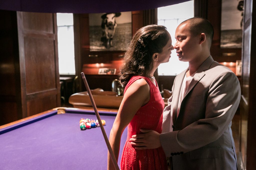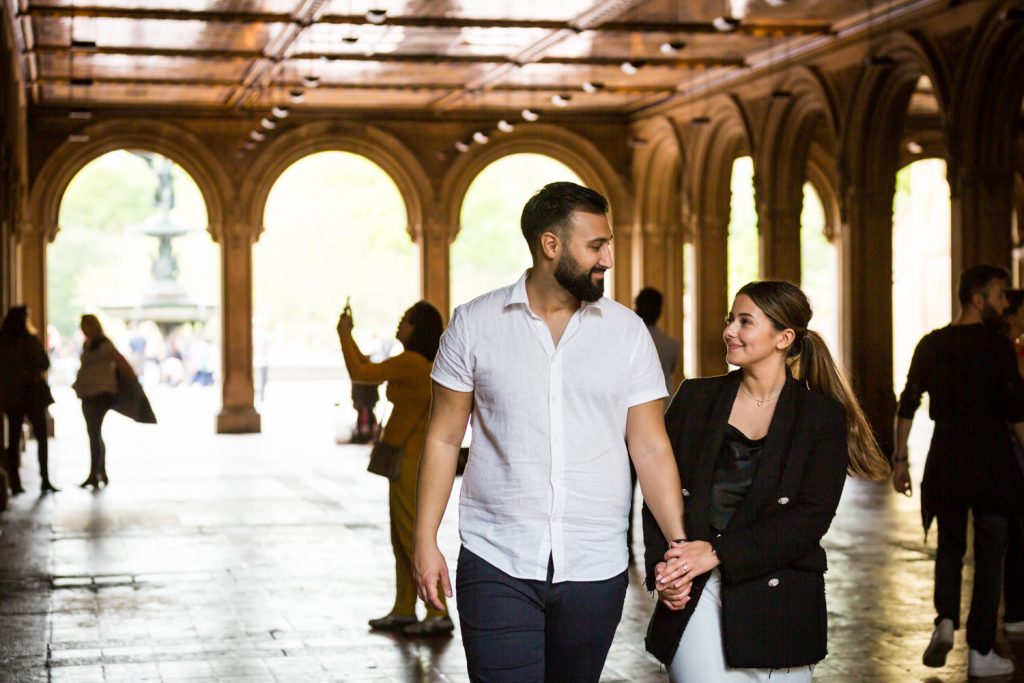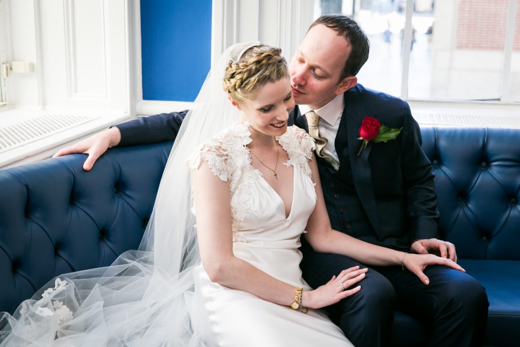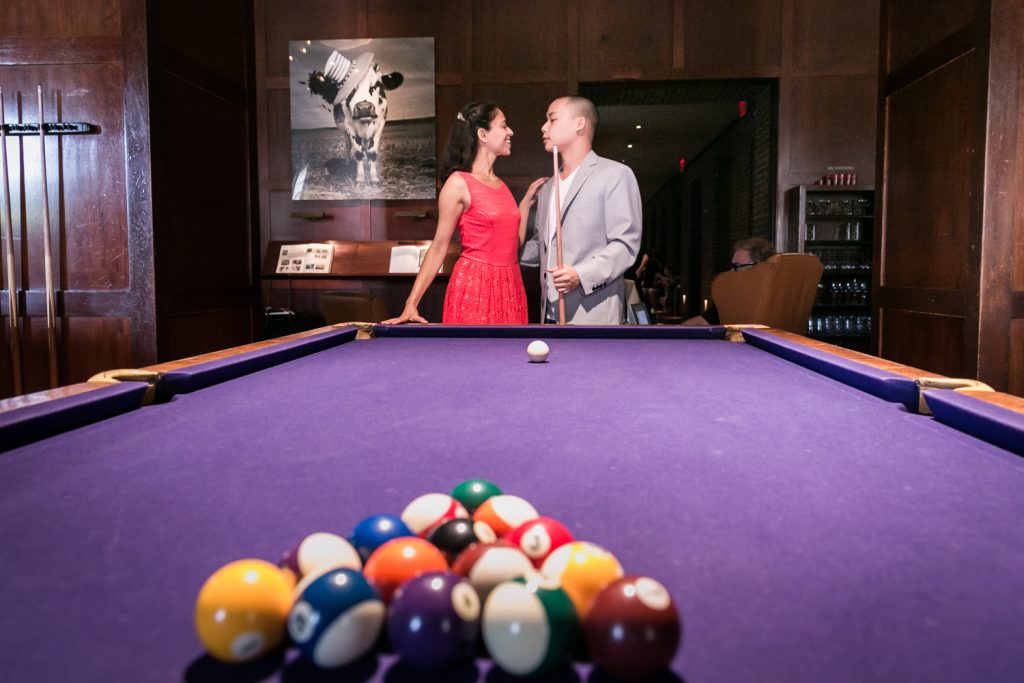 Hotels: Speaking of asking forgiveness, you might also try to sneak in a shoot in any of the grand hotels in NYC. Again, never set up a tripod or use a flash to bring attention to yourself, but if you act like tourists, then you might just get away with a few good shots. Bear in mind that if this is a case of portraits for a wedding, then wearing a white wedding dress is a bit like waving a red flag in front of a bull to hotel security. But if you are discreet, and most importantly if you don’t bother other guests, then you may go unnoticed. One fantastic hotel to try is the Roosevelt Hotel near Grand Central. I shot there for Meredith and Jonathan’s wedding as this was the hotel where they had their first date. [2025 edit: Sadly, we all know that this hotel has now gone out of business.] The hotel security seemed to not notice, and in fact we weren’t the only group taking photos on the mezzanine level. I have also shot an engagement shoot off hours in the bar at the Hudson Hotel in Columbus Circle.