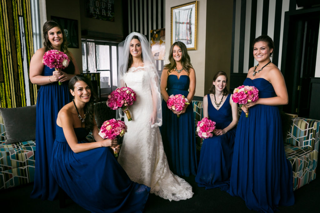 Providing your bridesmaids with options in what dress to choose is an act of pure kindness. No one has the same body type, or budget, so having a wealth of choices is great. If you are comfortable in your clothes and feel like you look great, then it will show on camera. On the contrary, if every one of your girls is constantly having to tug on straps or if even one of them feels fat in her dress, then that girl (or girls) is going to hate the portrait process. Do yourself, your girls, and me a favor by giving each bridesmaid a choice of dress.
