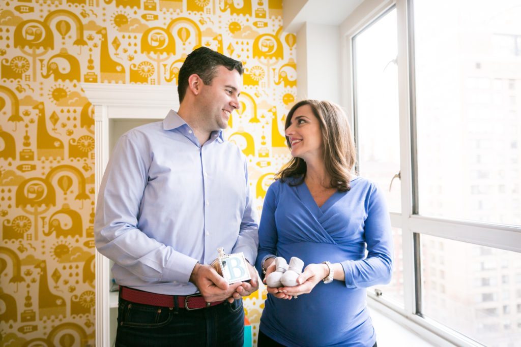 Alexandra, along with father-to-be Matthew, followed the portrait tips I sent them to the ‘T’: they were dressed in complimentary hues, but not too matchy matchy. Both of them were comfortable in their clothes, as reflected in the relaxed atmosphere of the shoot. The nursery, while a work in progress, was exceptionally clean, tidy, and ready to be photographed. Most importantly, they had some baby things ready to go, including precious little booties and a few outfits. Comparing outfits was a good ‘activity’ for the shoot and added to the photojournalistic feel of the session.