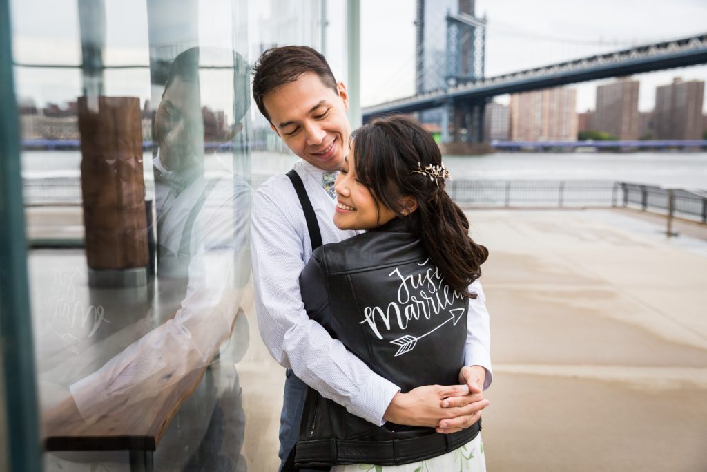Bride’s leather jacket: Ellen Liu Chan, #TheJustMarriedJacketNYC