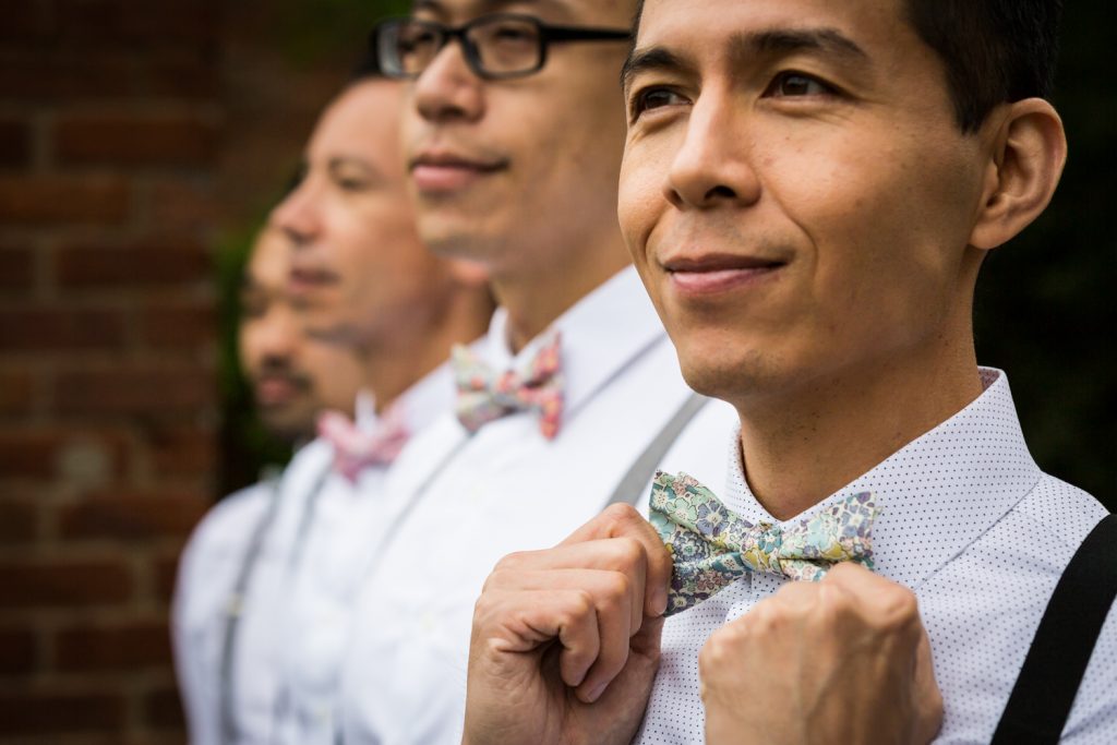 The day started off with the groom getting ready in the couple’s Harrison, NJ apartment, and the bride getting ready in an AirBNB apartment steps away from the restaurant. In case you are not hip to the trend, people in New York City are using AirBNB apartments as their home away from home. My clients Ariel and Jeremiah rented an apartment for their cooking-themed engagement portrait so that they could stage the shoot in a grander kitchen. Why make a mess in your own apartment? Likewise, Cindy chose to get ready for her wedding at an AirBNB apartment because it was much cheaper than a hotel room not to mention closer to the ceremony site. The apartment was the perfect staging area for hair and makeup. Of course, the one major caveat to using an AirBNB apartment is that renting your apartment on the website is technically illegal here in New York. But until Cuomo cracks down, I say make smart use of the service for all your getting ready needs.