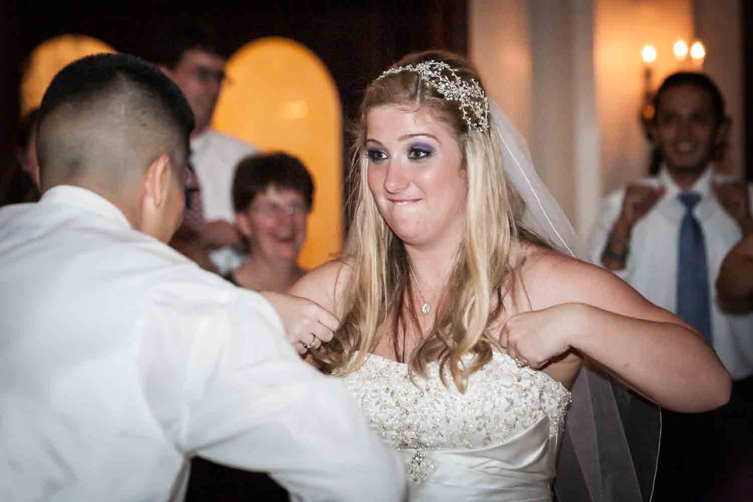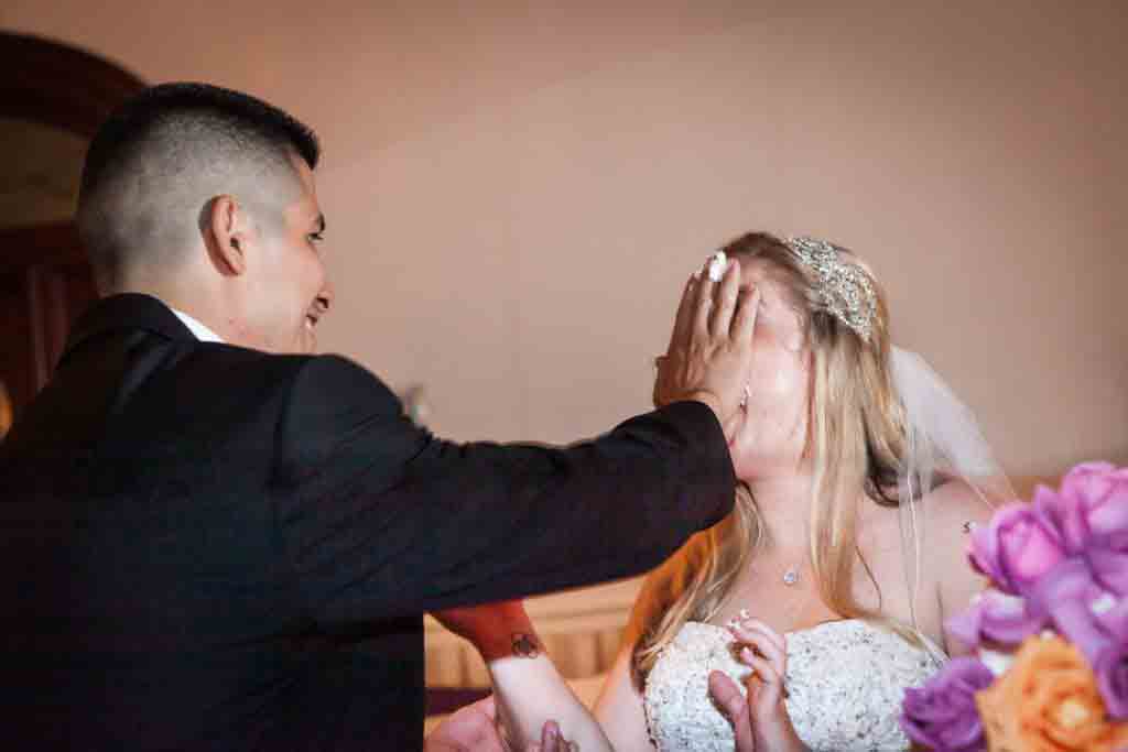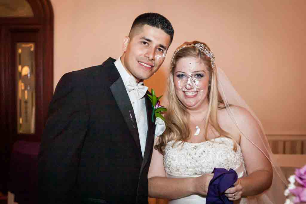 Congratulations to Rebecca and Jose! Their Fort Hamilton Community Club wedding in Brooklyn had a cake cutting that beats any I have ever photographed. I am pleased to share all the details — and action — with you in today’s post. Enjoy the photos!