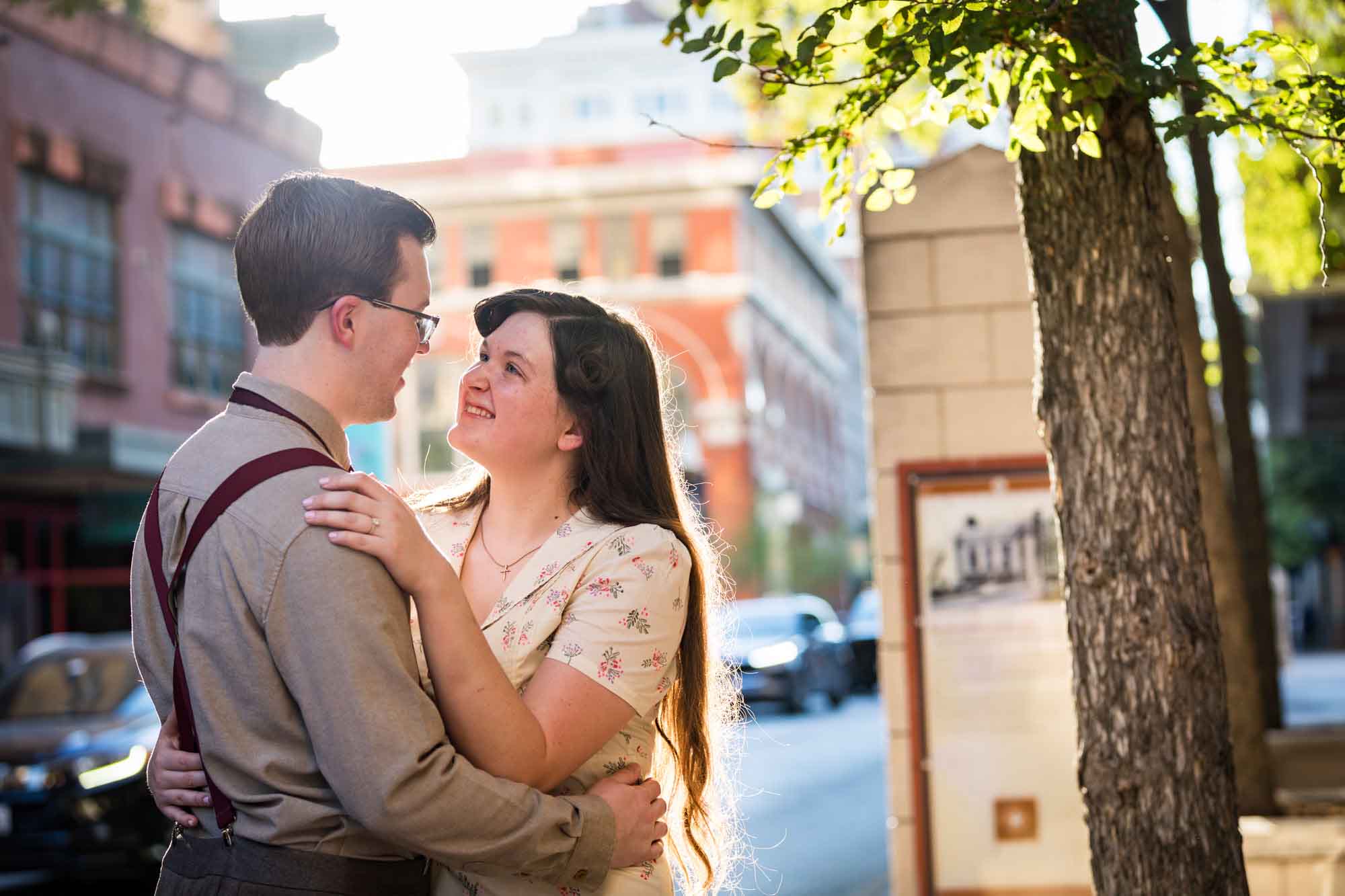 I love the IBC Bank building on Houston Street, which is a converted old Texas theater. There is an old ticket booth at the front of the building, which adds a bit of quaint charm – especially with Luke and Carlee’s retro outfits. Lastly, there is a cool window at Acenar Restaurant across the street from the IBC Bank which you may find interesting for reflections.