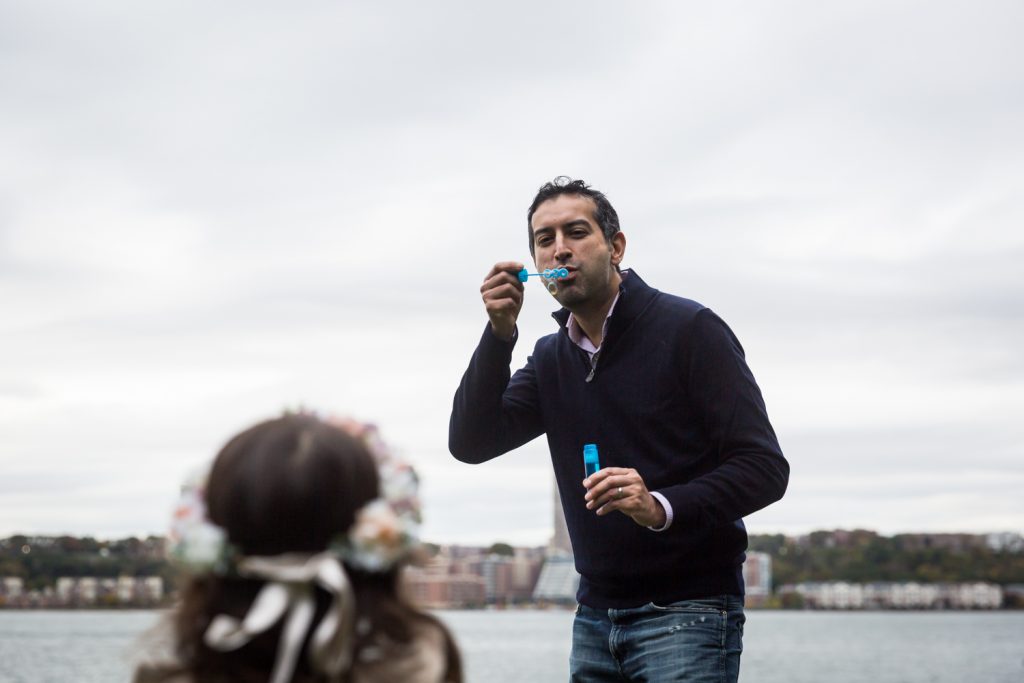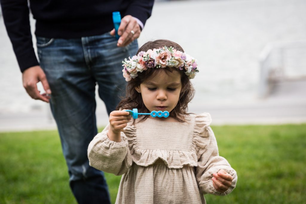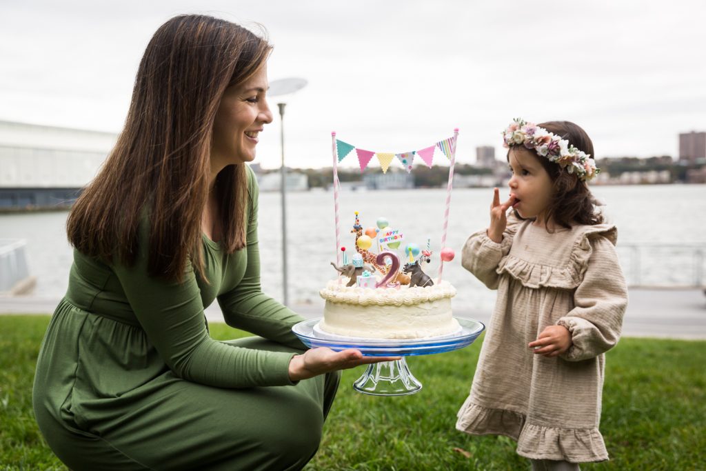 Next up I found a grassy knoll to take solo photos of Ely and Aamir’s little girl. Riverside Park is always popular, and on a Saturday you certainly won’t have the park all to yourself. That said, the waterfront is a great blank background and allowed me to isolate my subject somewhat. I brought bubbles, Ely brought out the cake, and shenanigans in front of the camera ensued.