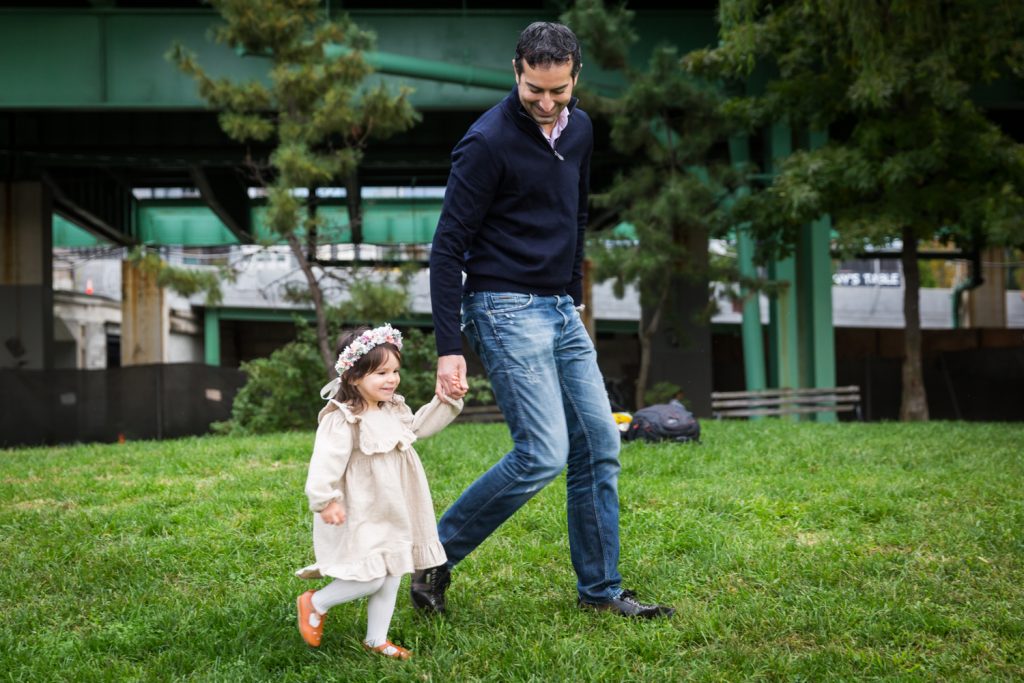 We began Ely and Aamir’s Riverside Park family portrait session at 61st Street. We met in front of the historical locomotive train parked by the river. This section of the park is close to their home, and my strategy for the shoot was to start at the park and work our way back towards their apartment.