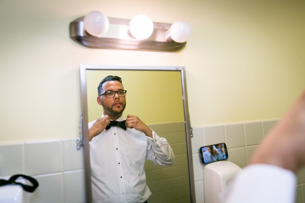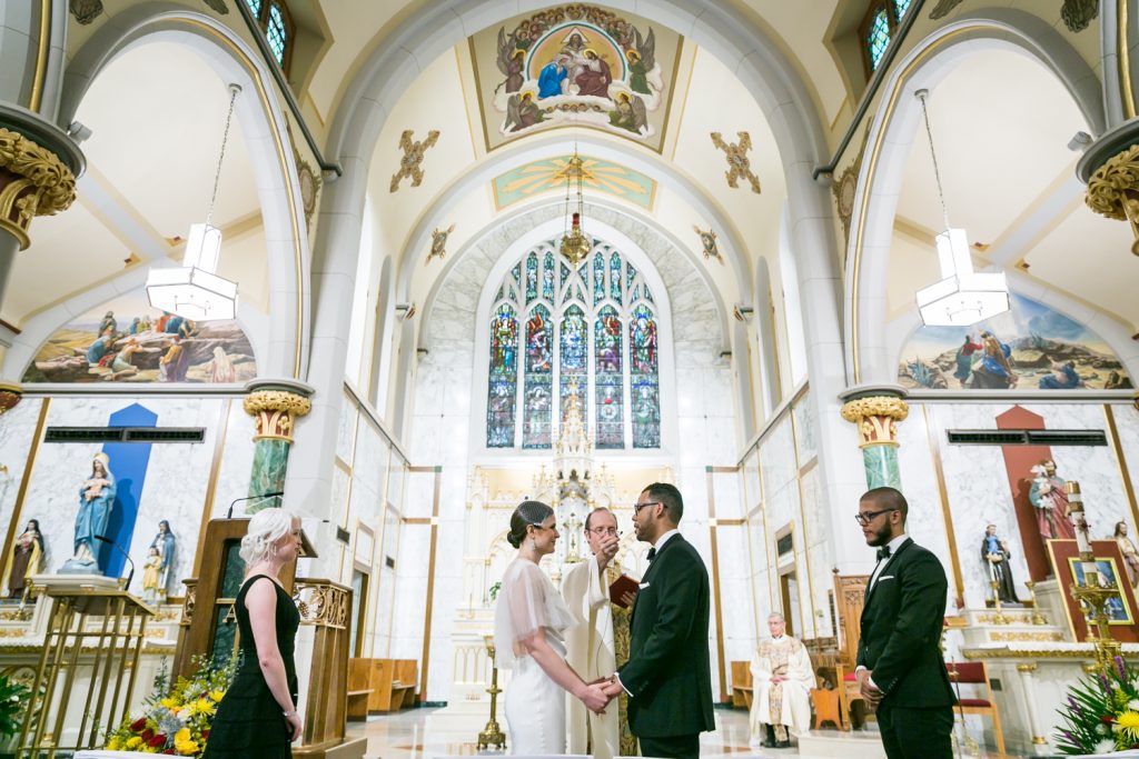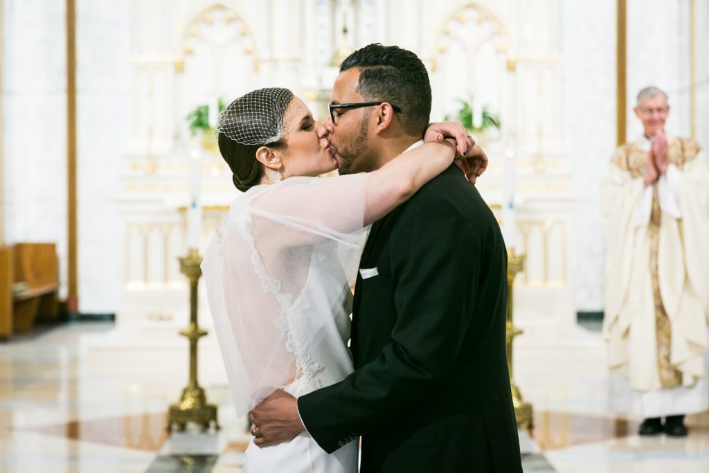Meredith and Jonathan started off their wedding day at Our Lady of Mt. Carmel Church in Astoria. This is Jonathan’s family church, and as you can see, the building is beautiful. The church went through a recent renovation and the results are absolutely stunning. After a few family photos at the altar, it was time to head to the site of Jonathan and Meredith’s first kiss…the Roosevelt Hotel.