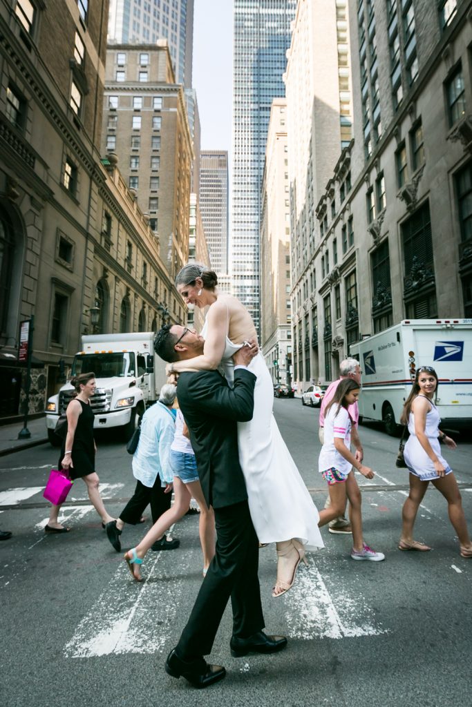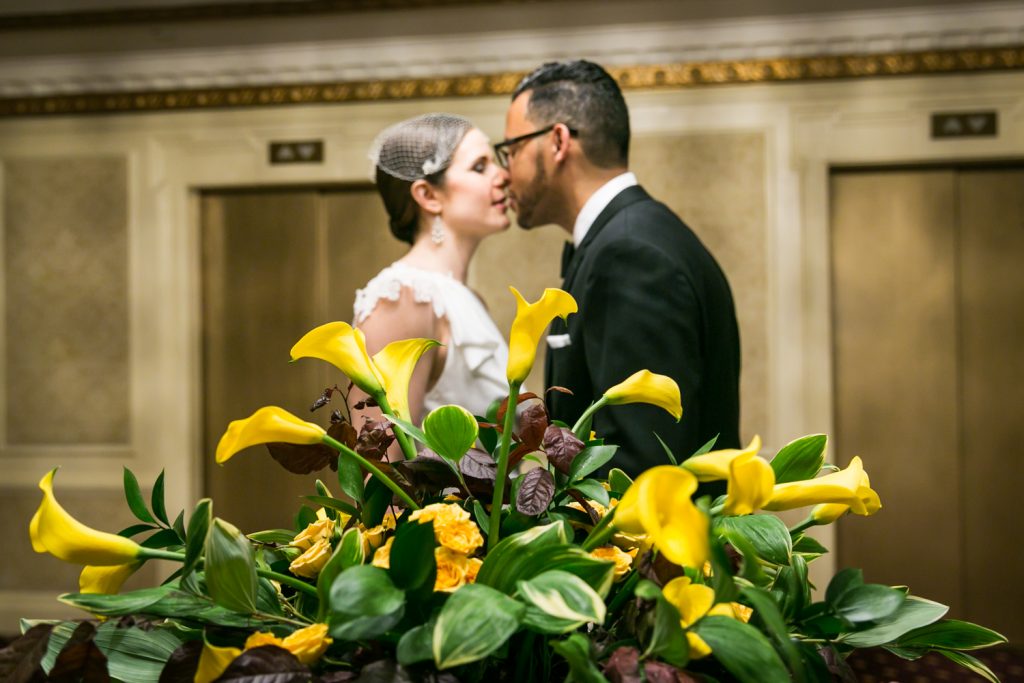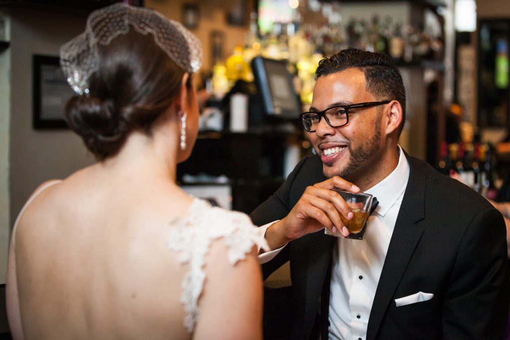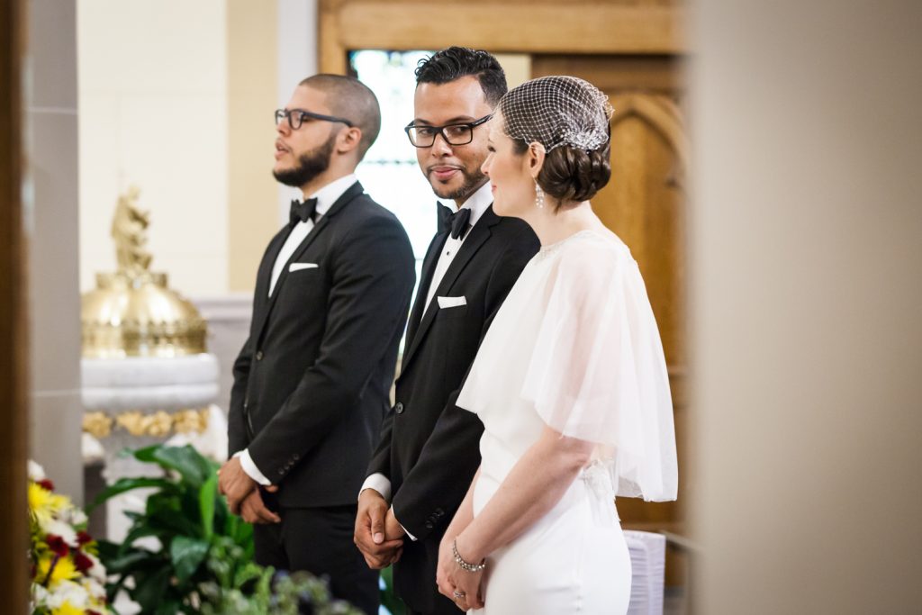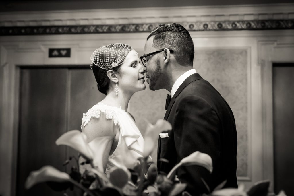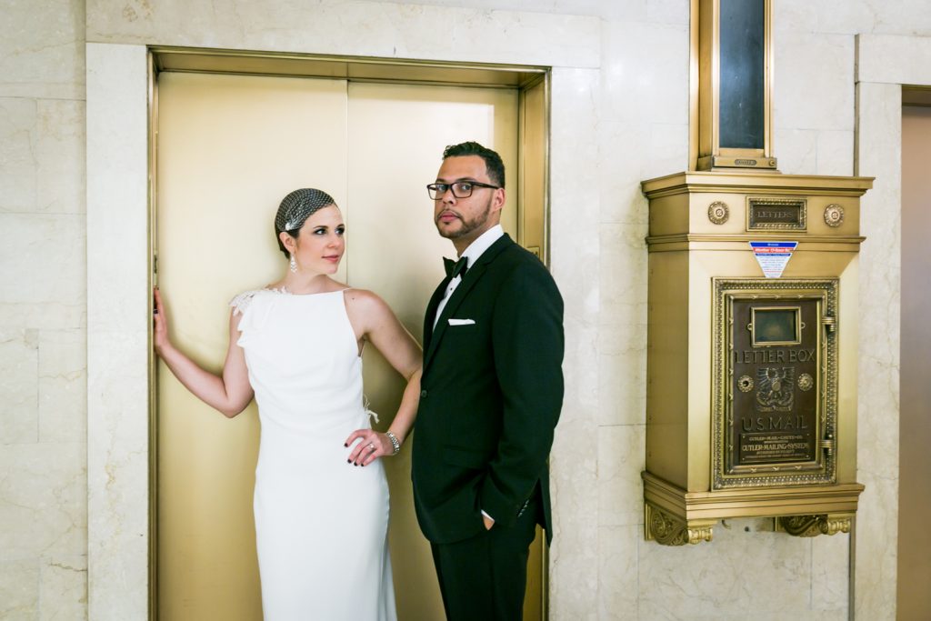 The couple started the day by saying their vows at Jonathan’s childhood church in Astoria. Eventually they would get down on the dance floor with family and friends at the Liberty in Manhattan. But they had one thing to do first — create an elegant set of Roosevelt Hotel wedding photos with me. The resulting images are fantastic…I mean, how could they not be with a couple dressed as well as these two? Check out the photos and get all the details from their wedding in today’s blog post.