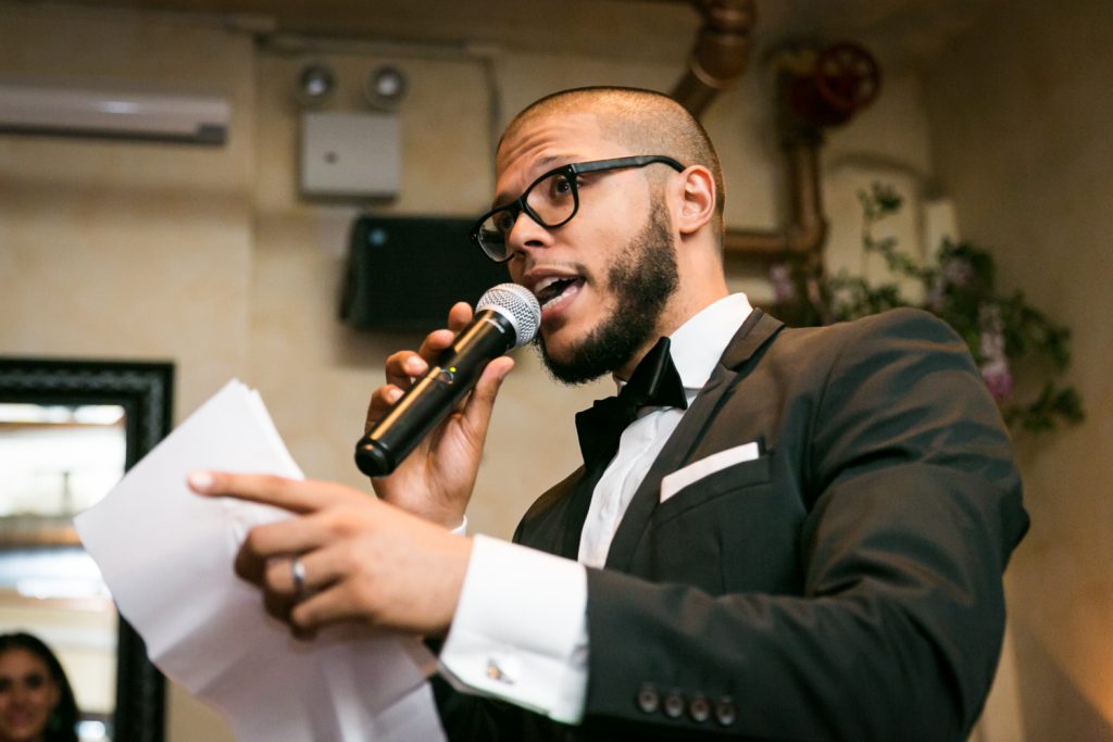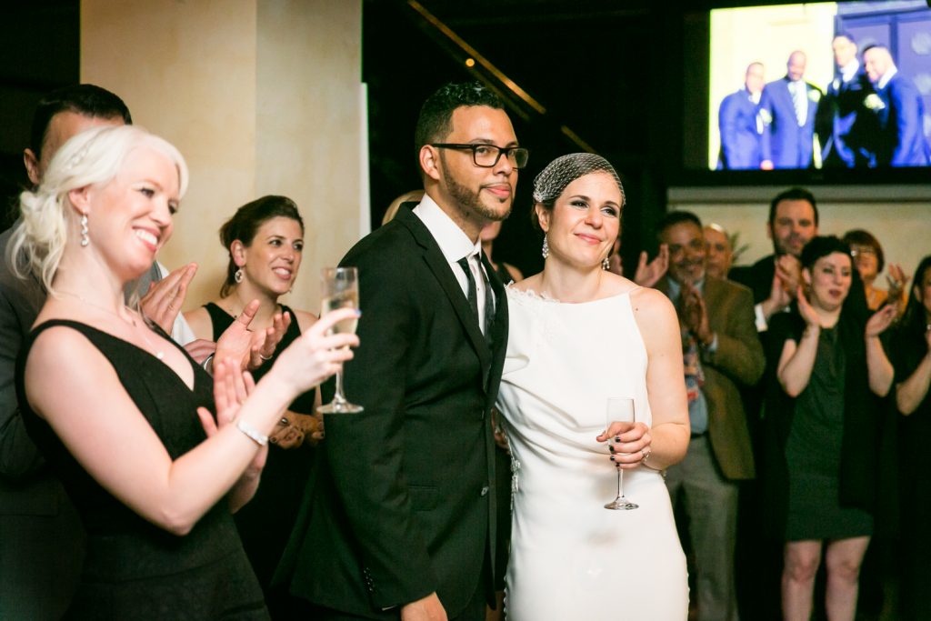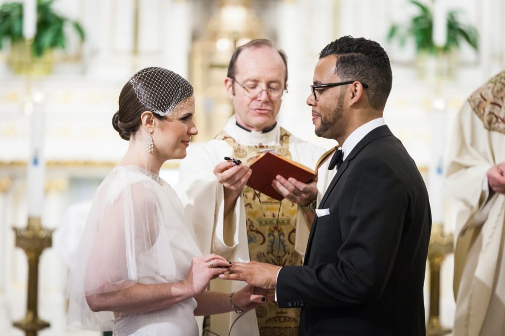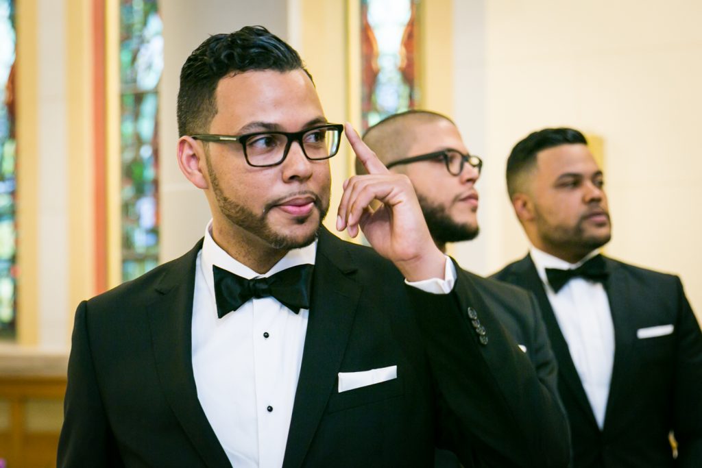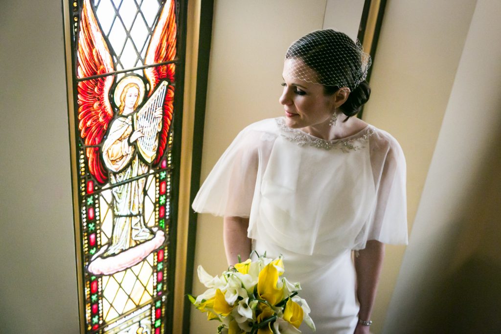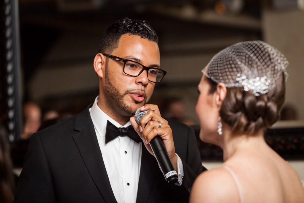 The couple started the day by saying their vows at Jonathan’s childhood church in Astoria. Eventually they would get down on the dance floor with family and friends at the Liberty in Manhattan. But they had one thing to do first — create an elegant set of Roosevelt Hotel wedding photos with me. The resulting images are fantastic…I mean, how could they not be with a couple dressed as well as these two? Check out the photos and get all the details from their wedding in today’s blog post.