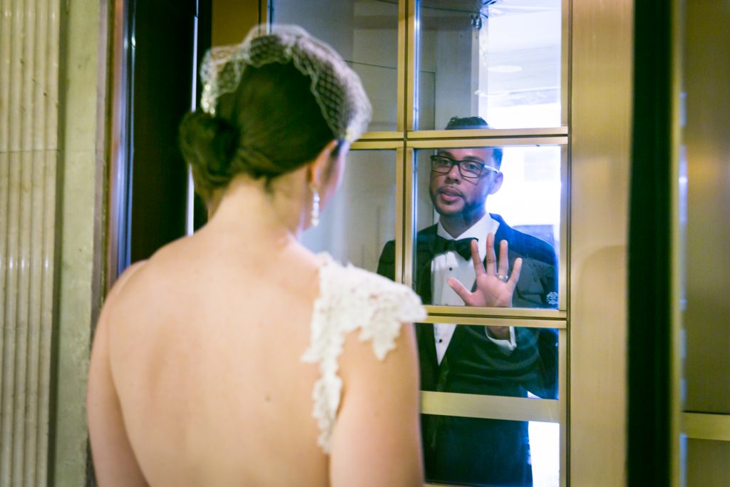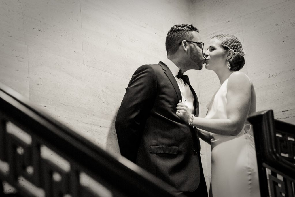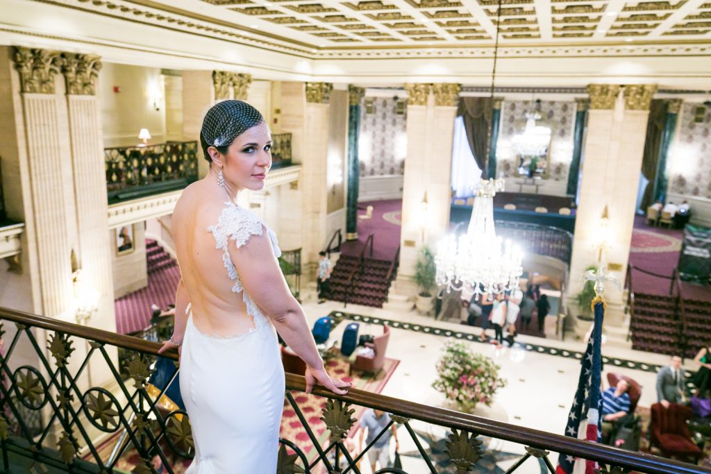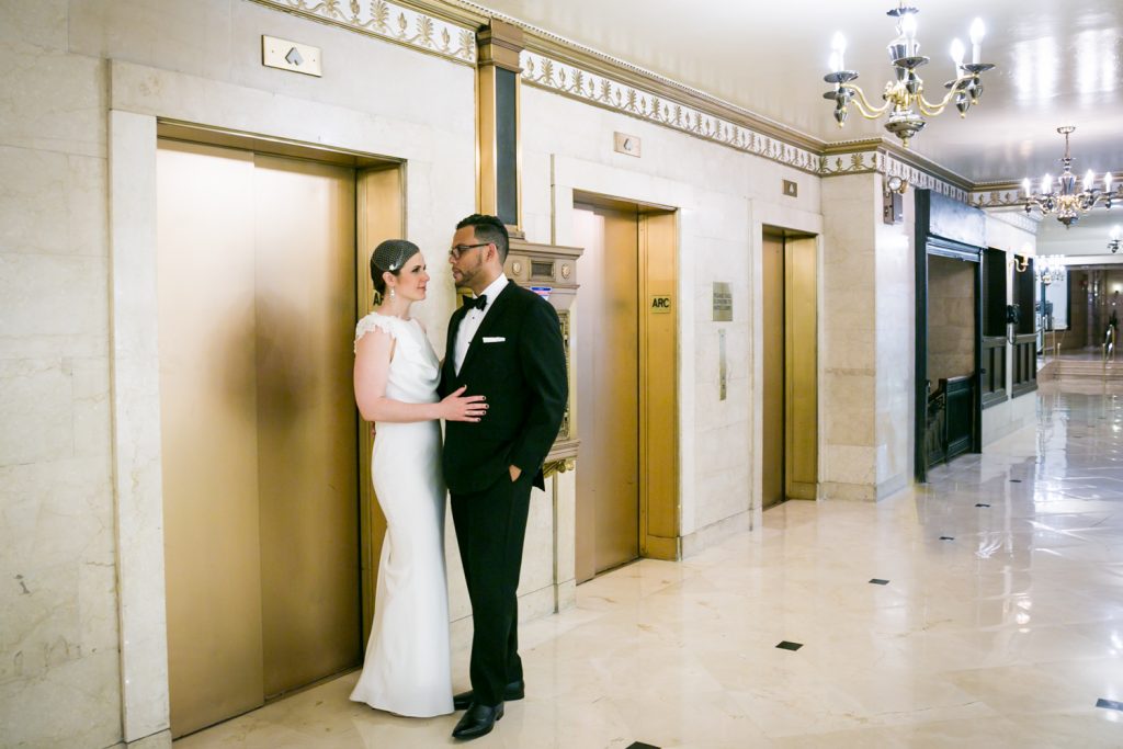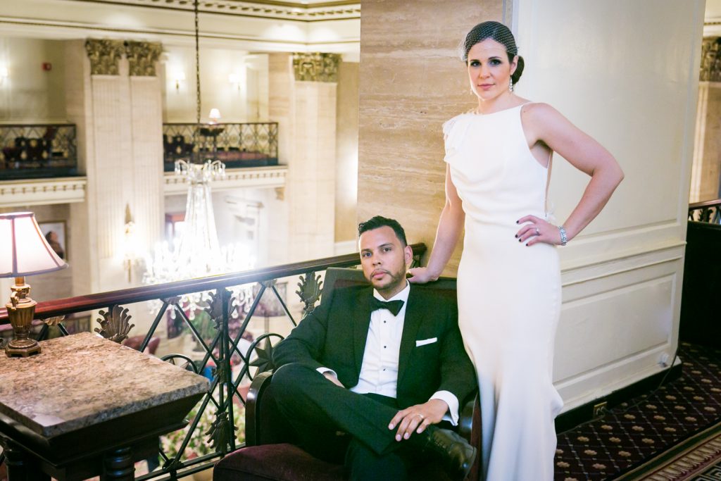 With a ‘Great Gatsby’ theme to their reception, this classy couple wanted a few sophisticated, Mad Men-esque photos at the hotel to mark the occasion. While I was originally worried that the hotel would toss us out for shooting without a permit, we ended up being able to take photos with the hotel staff not even batting an eye. Indeed, we weren’t the only wedding party on the mezzanine level taking photos!